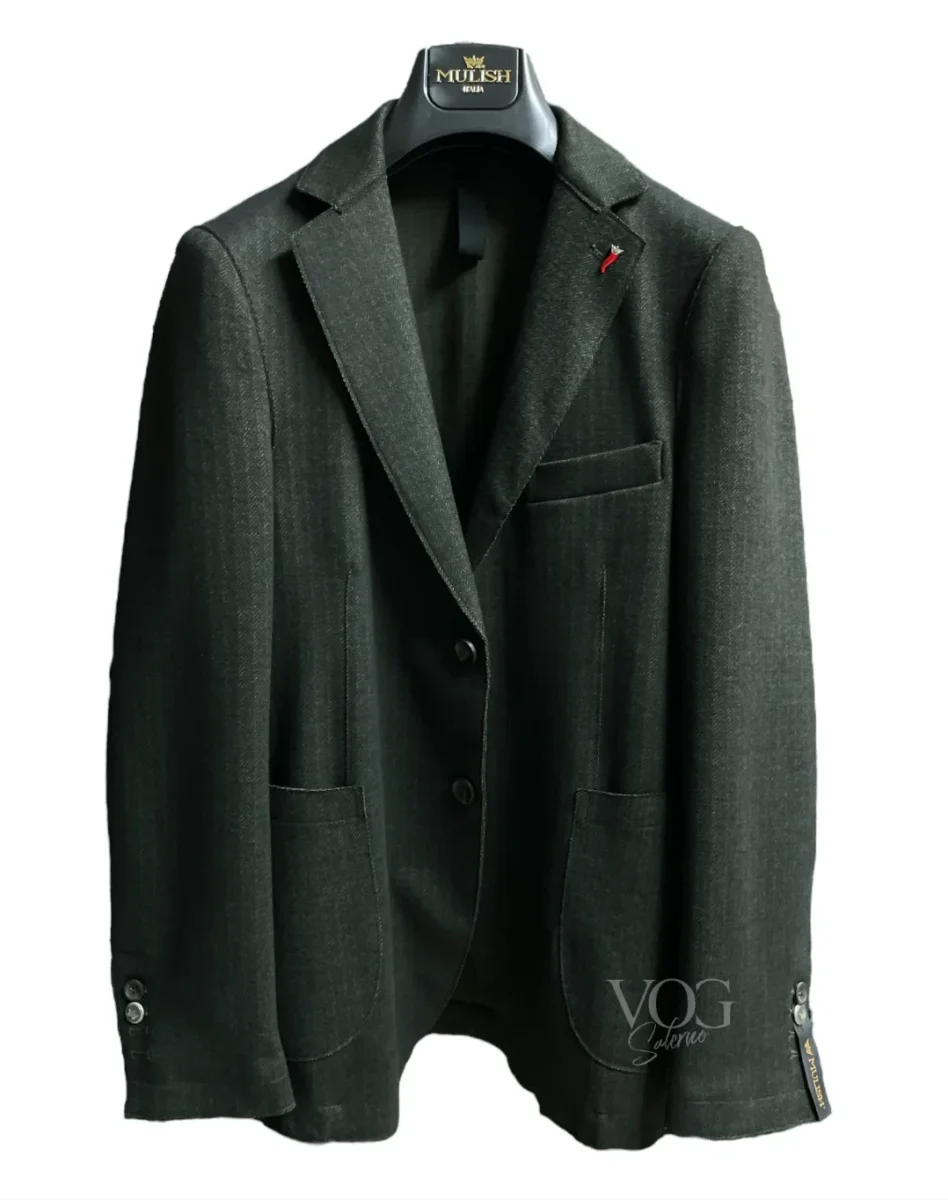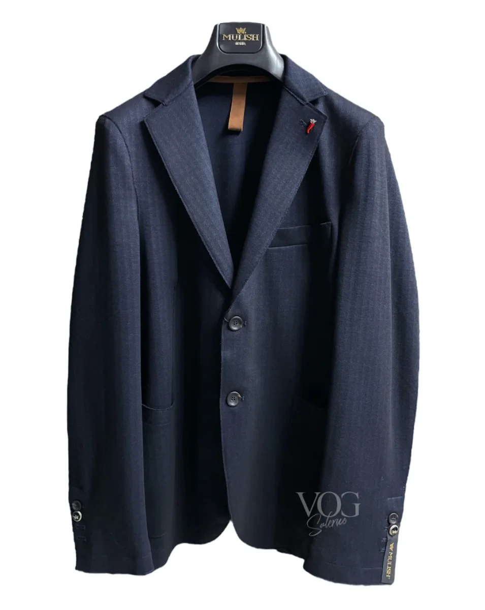 Giacca sportiva in tessuto elasticizzato misto viscosa. Collo con revers regolari, chiusura con due bottoni, taschino sul petto e tasche applicate. Motivo rigato tono su tono con interno spigato. Capo non foderato, bordi a taglio vivo. Vestibilità slim. Composizione tessuto 83% poliestere 15% viscosa 2% elastan.