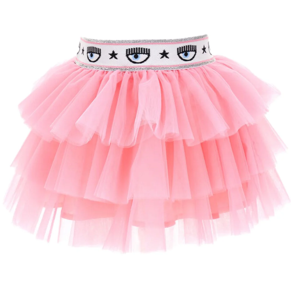 Gonna CHIARA FERRAGNI in tulle multibalze con elastico in vita logato a contrasto fodera in cotone applicata.