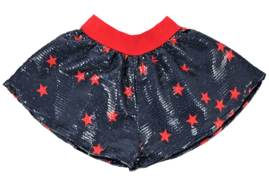 Gonna ELSY modello con elastico in vita fantasia stelle in colore a contrasto pailettes applicate. Modello realizzato a pantaloncino in modo da essere più libera nei movimenti.