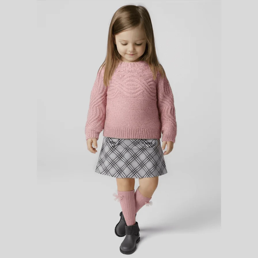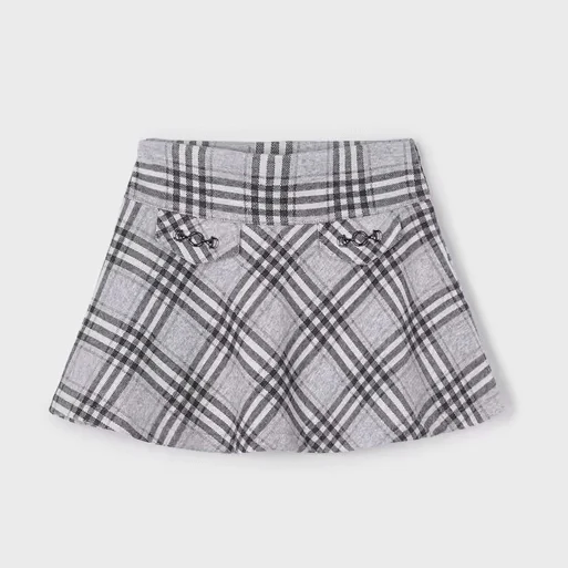 Gonna per bambina. Elastico regolabile in vita che garantisce un migliore vestibilità. Trama a quadri. Disegni in punto jacquard.