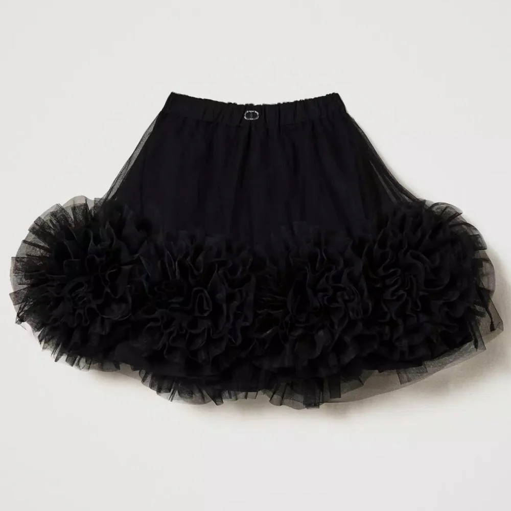 Gonna TWINSET in tulle con rose arricciate elastico in vita con logo fodera interna in cotone.