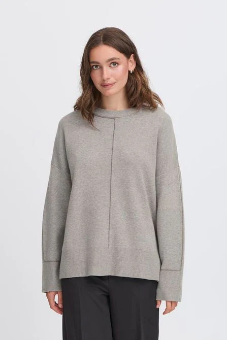 Maglia donna oversize in tessuto misto viscosa. Girocollo ampio con bordo rifinito a coste. Spalla raglan, maniche lunghe. Dettaglio cucitura più scura sul davanti, sulle maniche e sulla schiena. Spacchetti laterali. Taglia in foto S. Composizione tessuto 50% viscosa, 28% poliestere, 22% nylon. Crea il completo con la gonna in maglia.