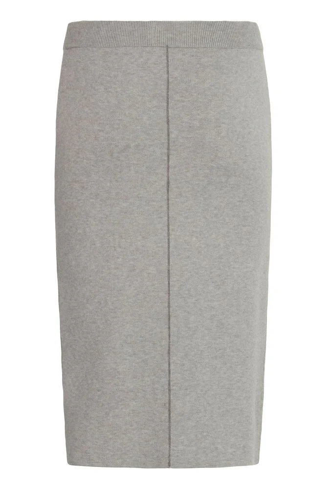Gonna in maglina elasticizzata tessuto misto viscosa. Vita regolare con elastico rifinito a coste. Cucitura più scura su entrambi i lati. Vestibilità regolare. Composizione tessuto 50% viscosa, 28% poliestere, 22% nylon. Crea il completo con la maglia oversize abbinata.