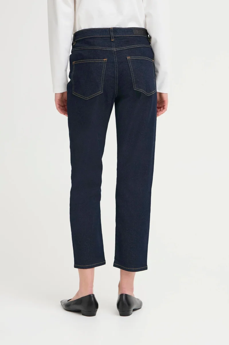 Jeans basic donna modello carrott. Vita regolare, 5 tasche, chiusura con zip e bottone. Comodo sui fianchi e sulle gambe. Lunghezza crop alla caviglia. Relaxed fit. Composizione tessuto 98% cotone 2% elastan.