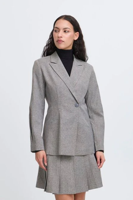 Giacca donna lunga in tessuto motivo melangé sale e pepe. Revers a lancia, abbottonatura laterale. Maniche lunghe con piegone sul polso e polsino più stretto, che conferisce una particolare struttura alla manica. Capo foderato. Crea il completo con il pantalone abbinato. Taglia in foto 40 italiana. Le taglie indicate corrispondono alle taglie italiane. Composizione tessuto 97% poliestere 3% elastan.