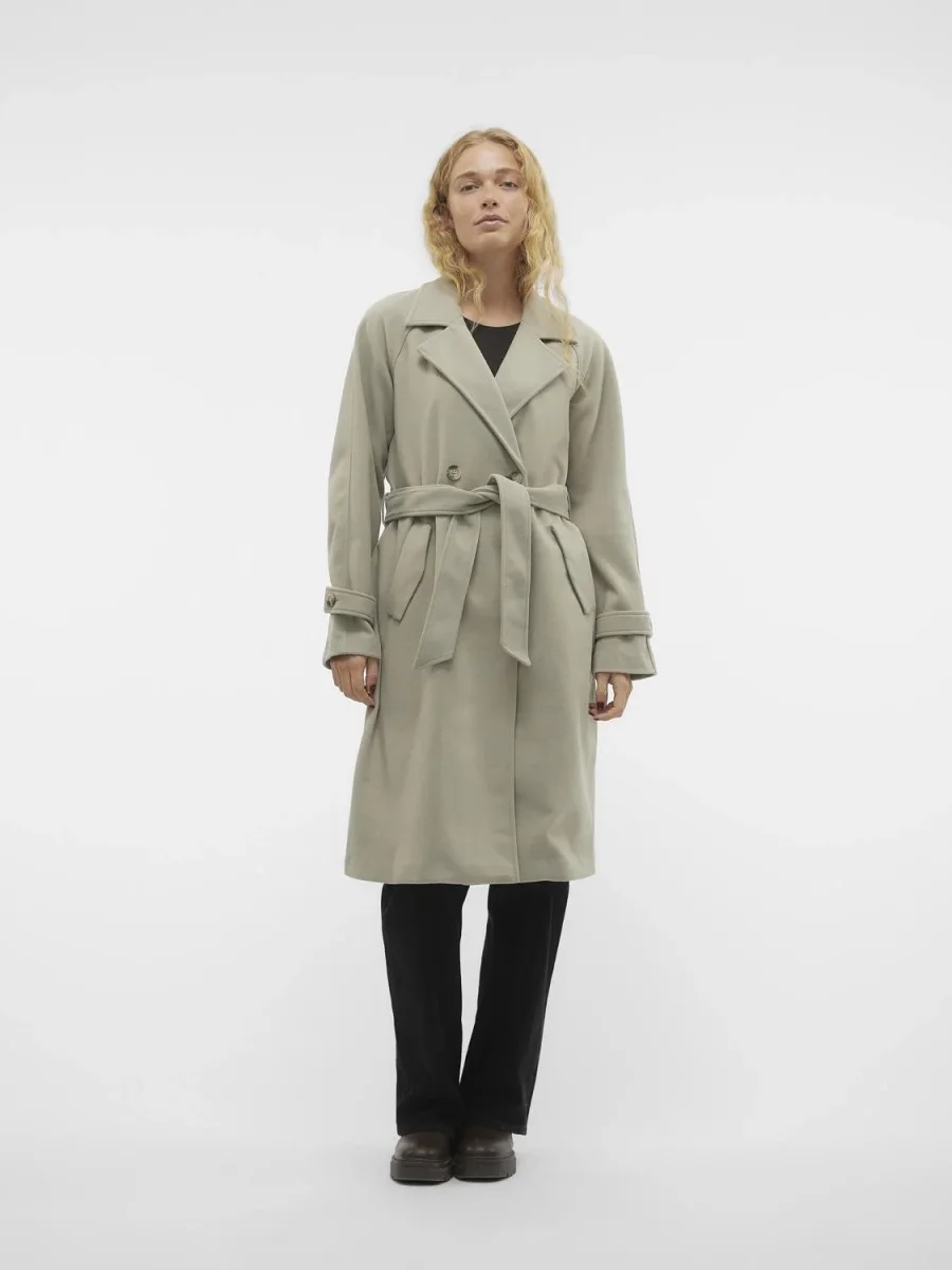 Cappotto lungo sfoderato perfetto per le stagioni intermedie. Collo con ampi revers a lancia, chiusura centrale a due bottoni con cintura in tinta. Spalla raglan, maniche lunghe con pattina applicata ai polsi. Vestibilit� oversize. Taglia in foto S. Composizione tessuto 100% poliestere 300 GSM.