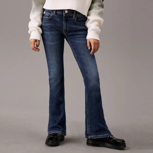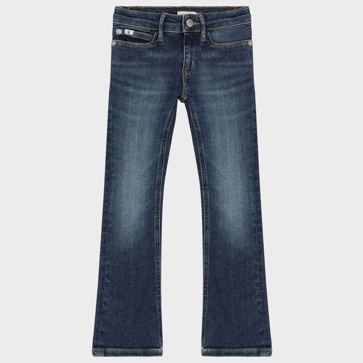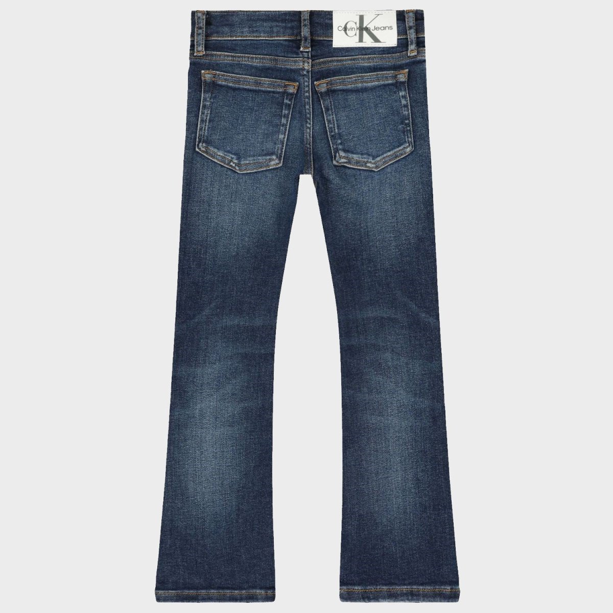 Jeans CALVIN KLEIN per bambina in denim vintage, modello 5 tasche con chiusura zip e bottone logato , regoli in vita , logo applicato sul retro.