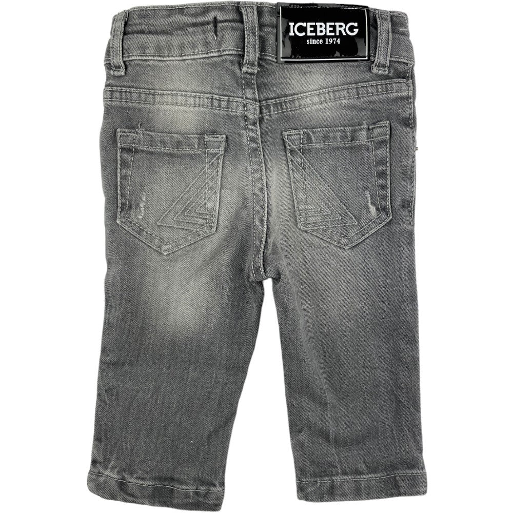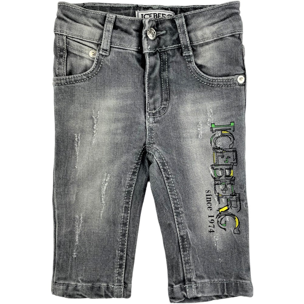 Jeans ICEBERG grigio con stampa logo istituzionale iceberg a contrasto multicolor regoli in vita.