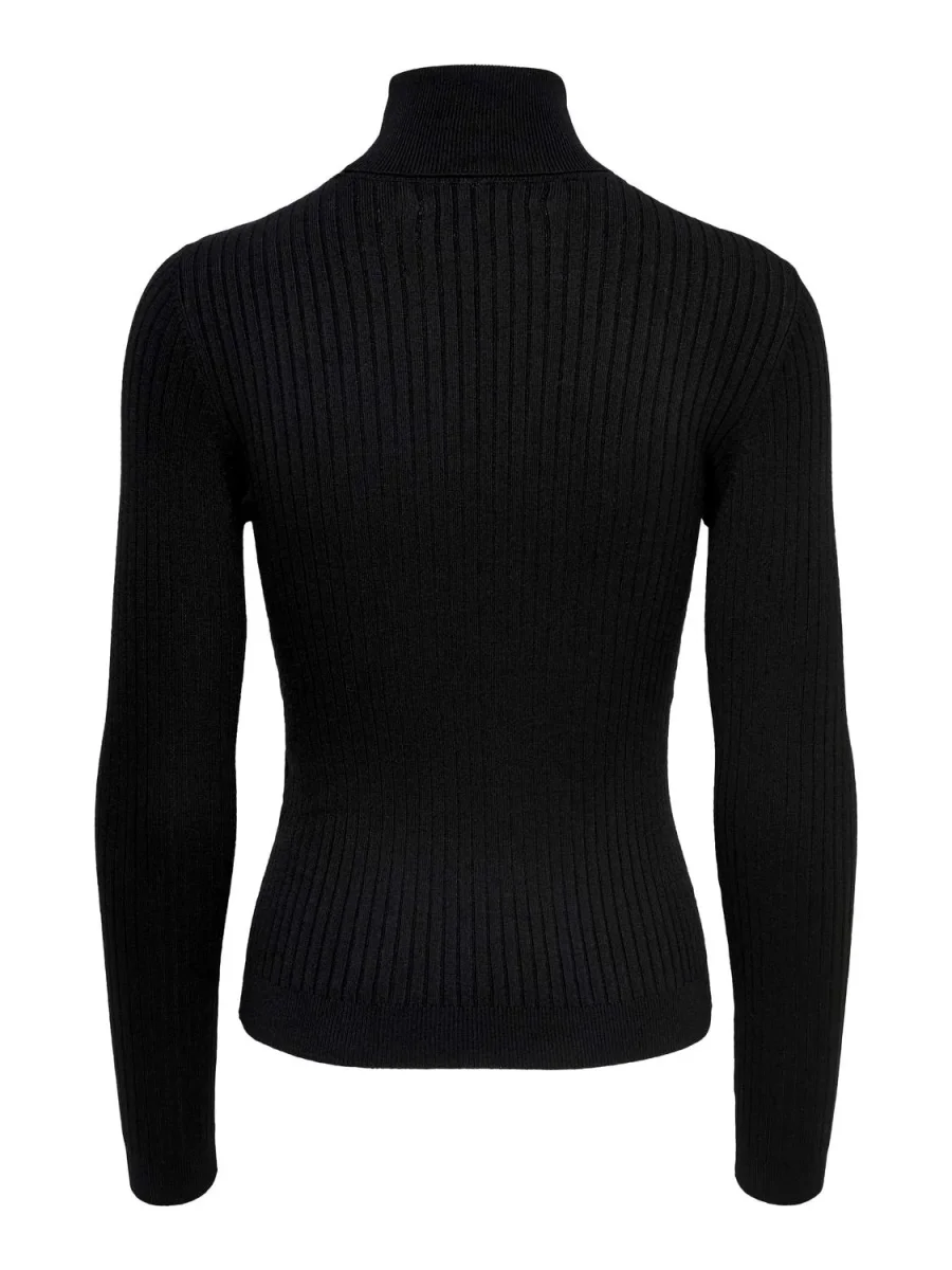 Maglia basic aderente in tessuto misto viscosa lavorato a coste. Collo alto dolcevita. Maniche lunghe, modello aderente adatto anche come sottogiacca. Taglia in foto S. Composizione tessuto 80% viscosa 20% nylon.