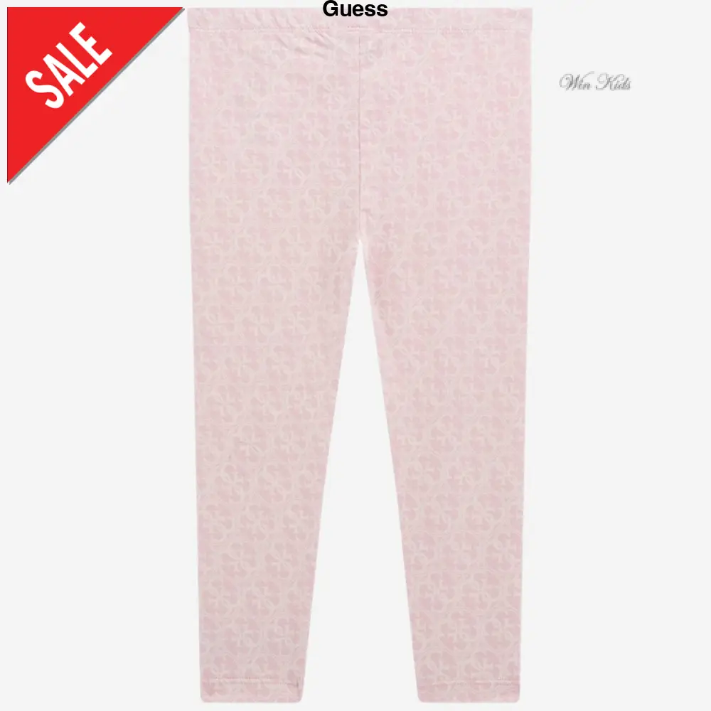 Leggings GUESS in cotone a fantasia logata in colore a contrasto con elastico in vita e logo glitter stampato alla caviglia.