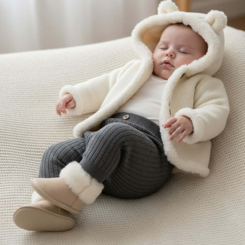 Pantalone modello leggings per neonati. Elastico in vita. Tessuto morbido per una comodità giornaliera.