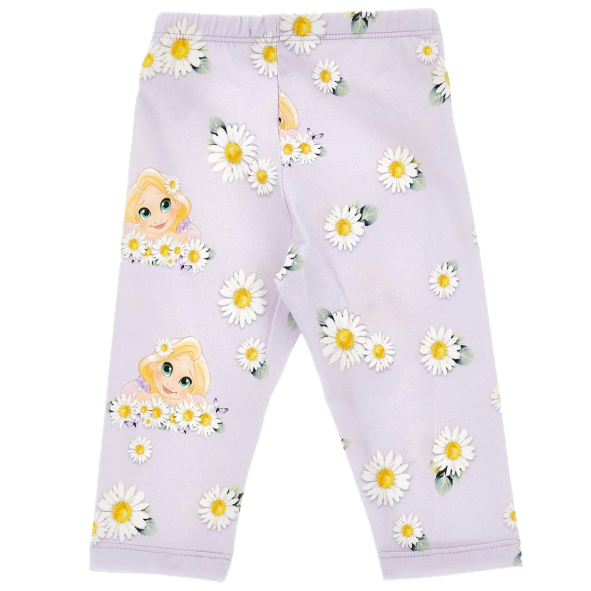 Leggings MONNALISA in cotone con elastico in vita a fantasia stampata margherite e Rapunzel all over.