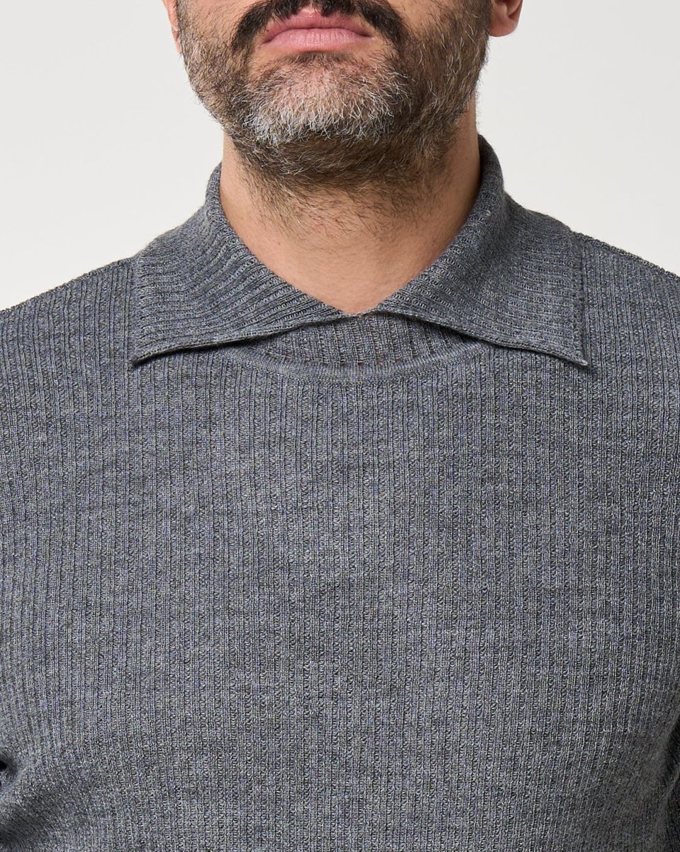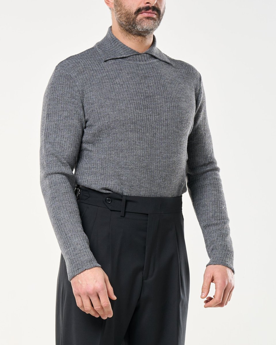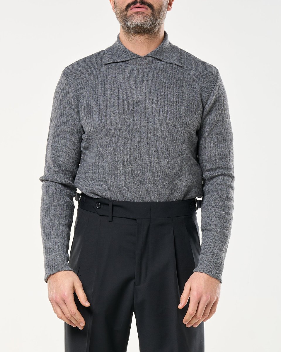 Maglia in filato di lana a coste finissime, caratterizzata dal particolare collo “twist” sovrapposto. Vestibilità regolare, manica lunga e costruzione a maglia compatta che garantisce comfort e termicità. Un capo essenziale ma ricercato, ideale per look eleganti e contemporanei.