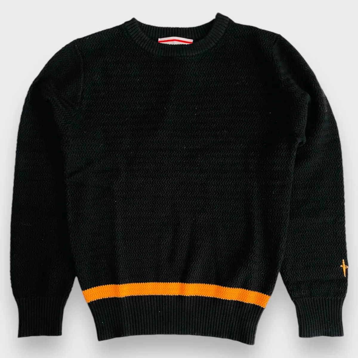 Maglioncino CESARE PACIOTTI con lavorazione intrecciata, logo spadino paciotti a contrasto.