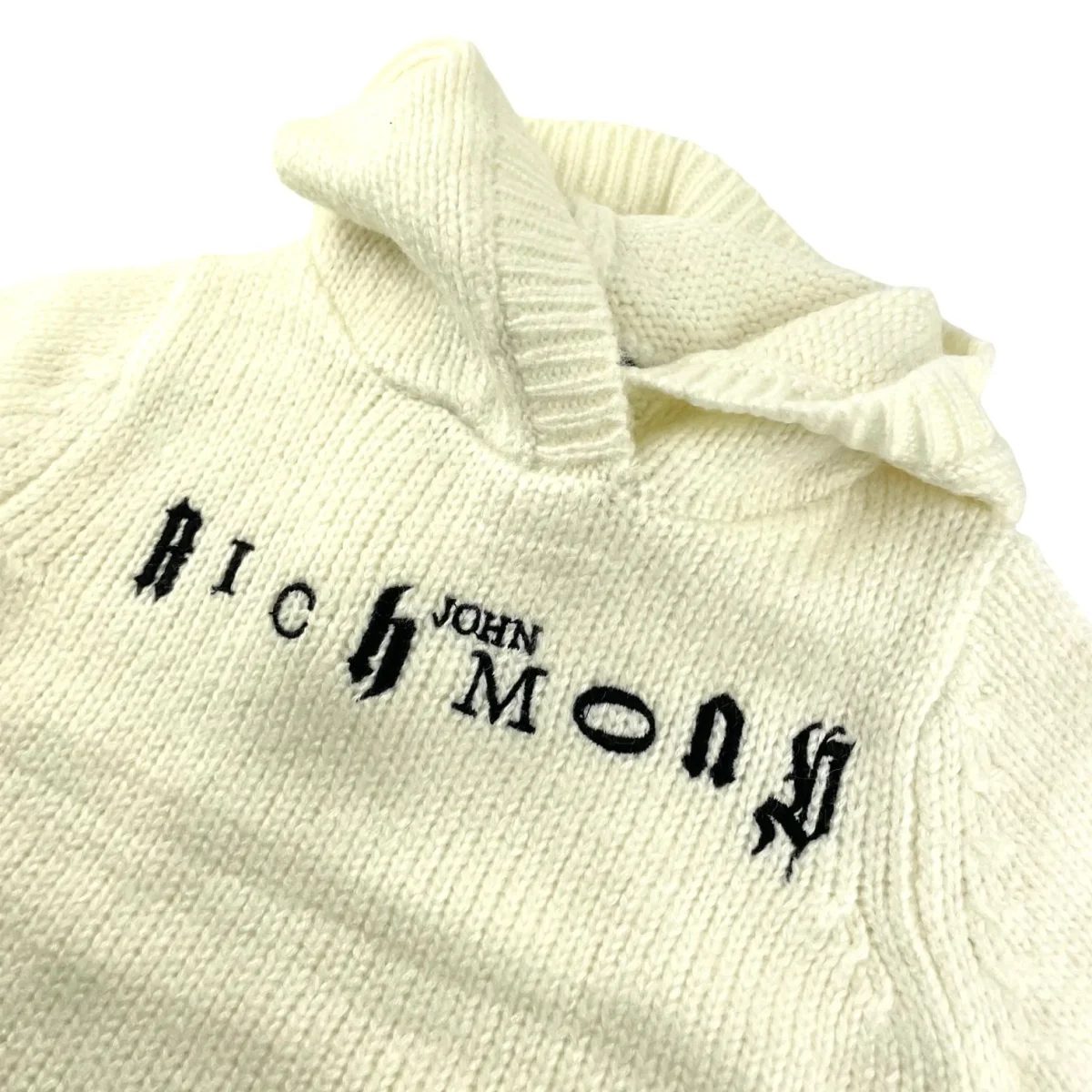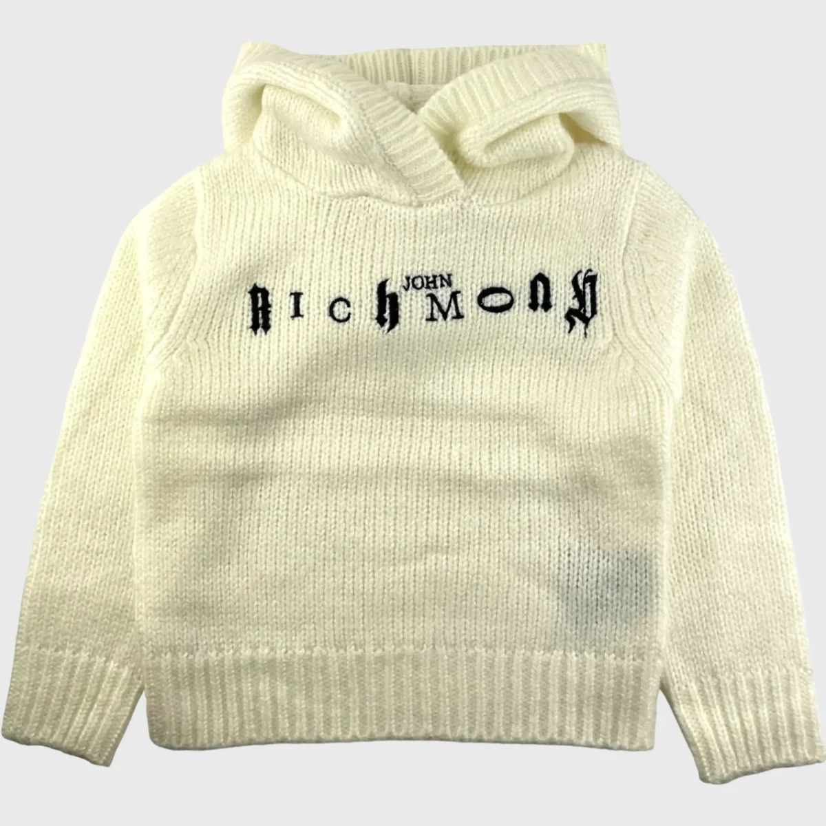 Maglioncino JOHN RICHMOND modello con cappuccio panna con logo ricamato john richmond a contrasto in colore nero.