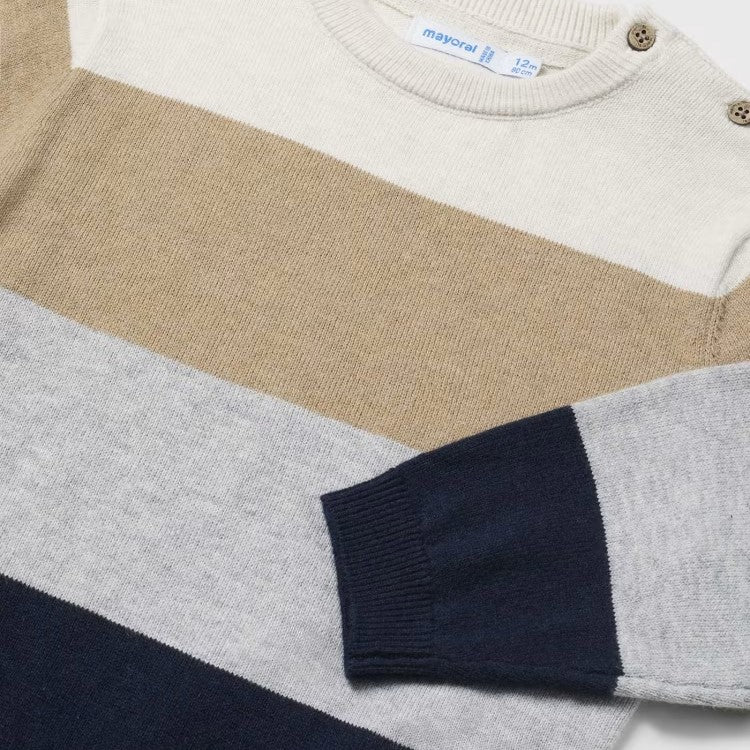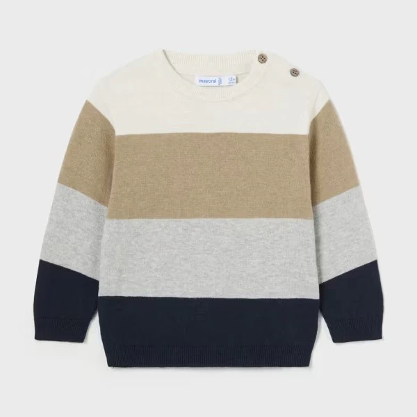 Maglioncino MAYORAL in misto lana a fantasia in colori a contrasto, chiusura con bottoncini logati su spalla.