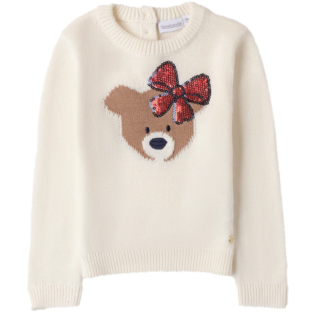 Maglioncino SARABANDA per bambina con orsetto a contrasto nella trama e paillettes applicate