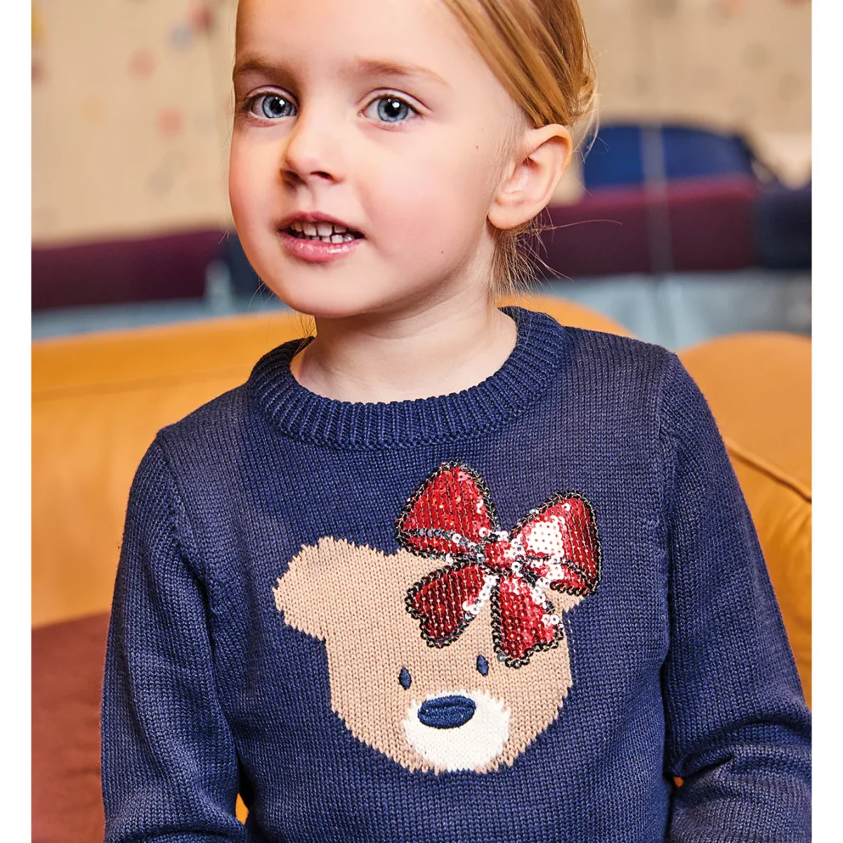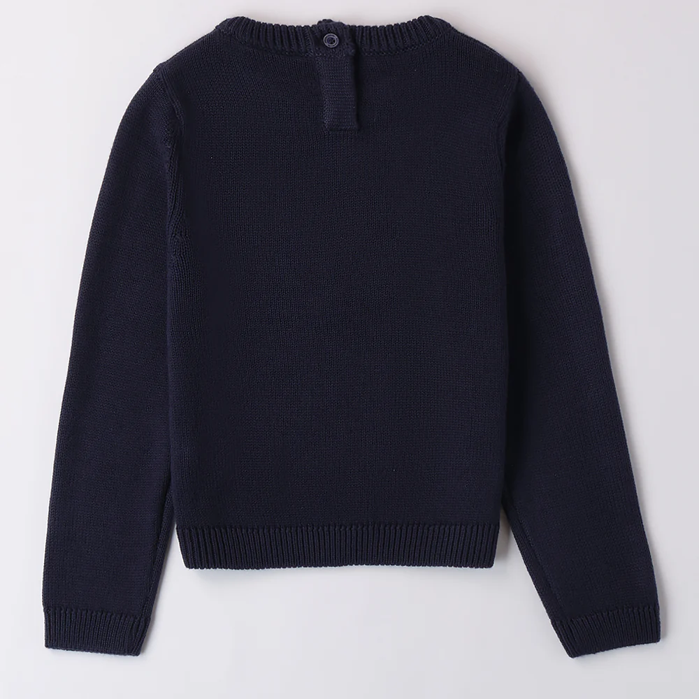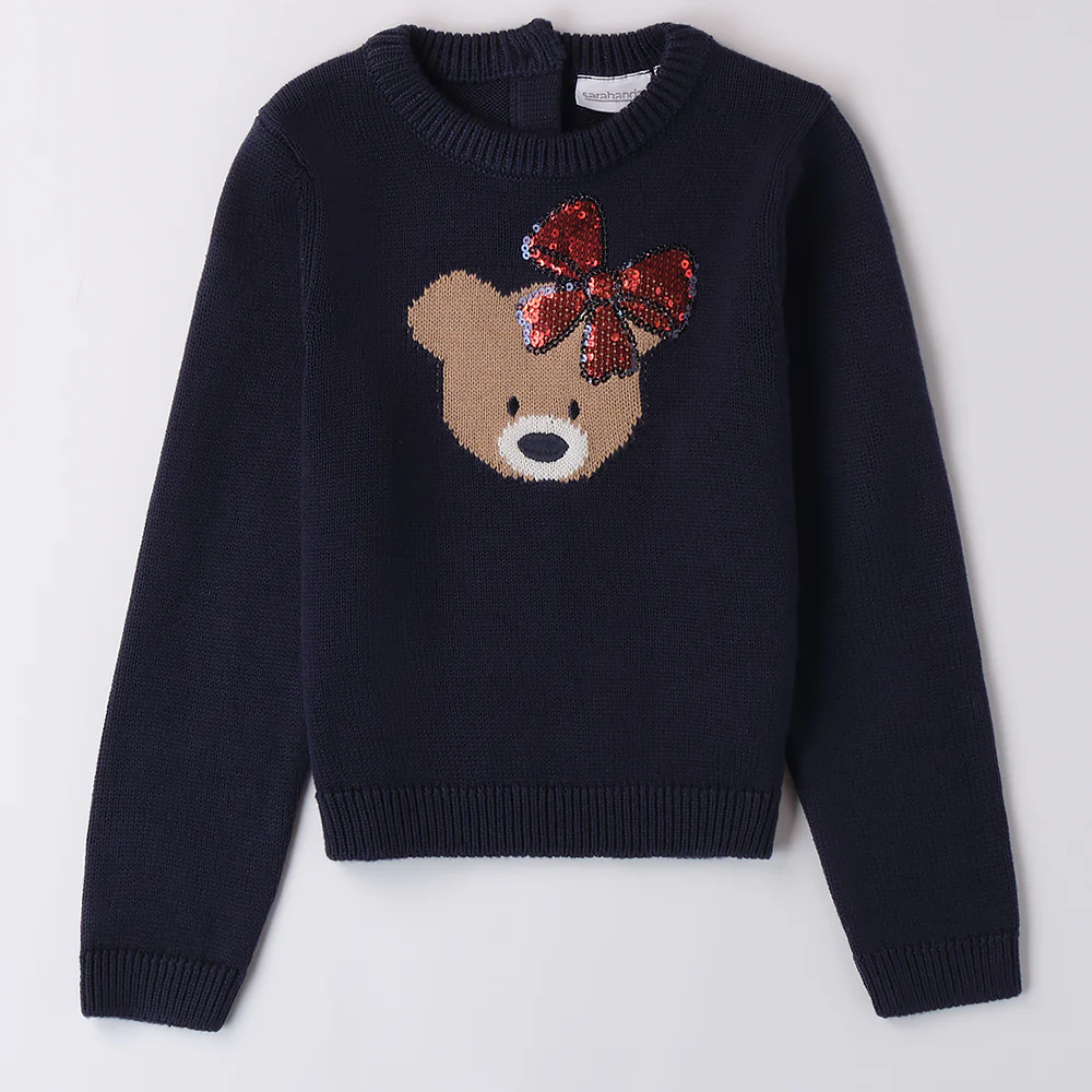 Maglioncino SARABANDA per bambina con orsetto a contrasto e applicazioni in paillettes.