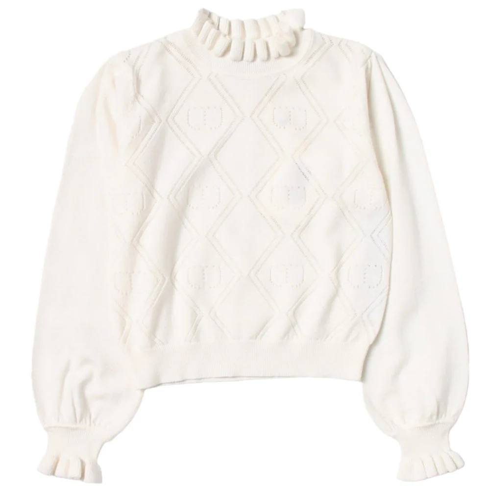 Maglioncino TWINSET in misto lana con rifiniture a contrasto.codice: 232GJ3771 Panna