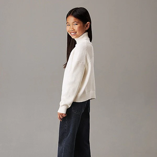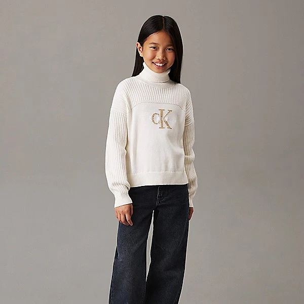 Maglione CALVIN KLEIN in caldo cotone collo alto con logo ricamato applicato.