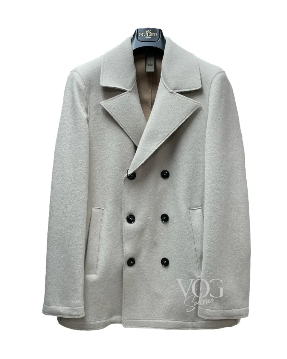 Giubbino corto modello peacot in tessuto lavorato misto viscosa. Collo con revers ampi, chiusura doppio petto con bottoni a contrasto. Interno in tessuto scuba. Bordi rifiniti a taglio vivo. Tasche laterali con bordo largo. Vestibilità regolare. Composizione tessuto 67% poliestere 30% viscosa 3% elastan.