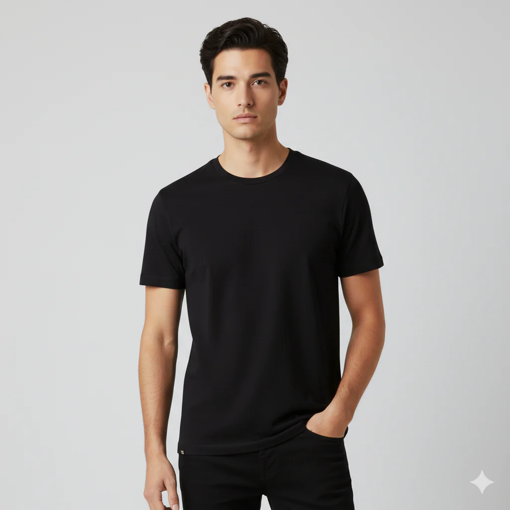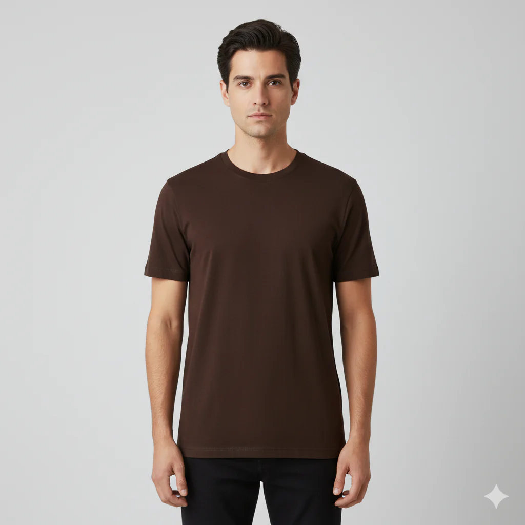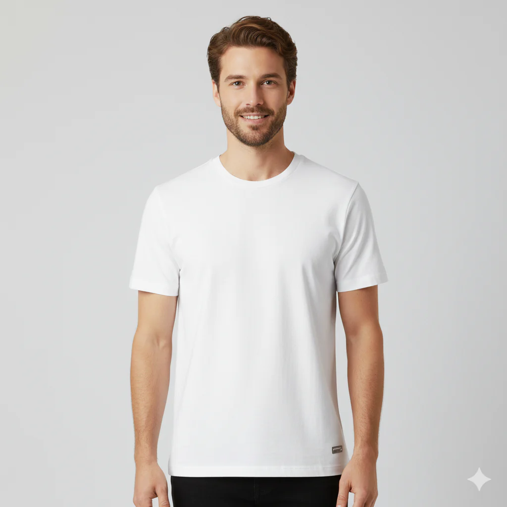 T-shirt basica in tessuto 100% cotone. Girocollo regolare con bordo liscio, vestibilità dritta. Logo brand cucito sul fondo.