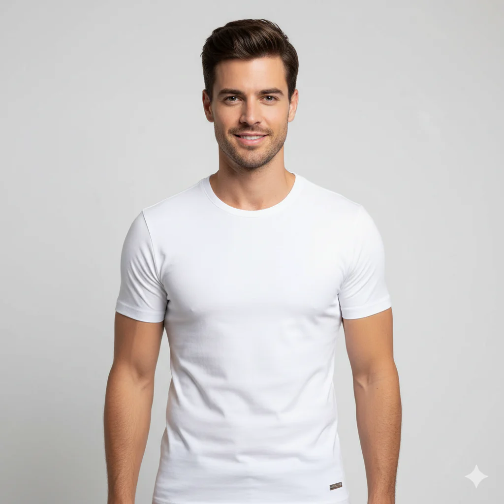 T-shirt slim fit in tessuto cotone tech elasticizzato. Girocollo regolare con bordo liscio, vestibilità slim. Logo brand cucito sul fondo. Maniche corte regolari. Composizione tessuto 95% cotone 5% elastan.