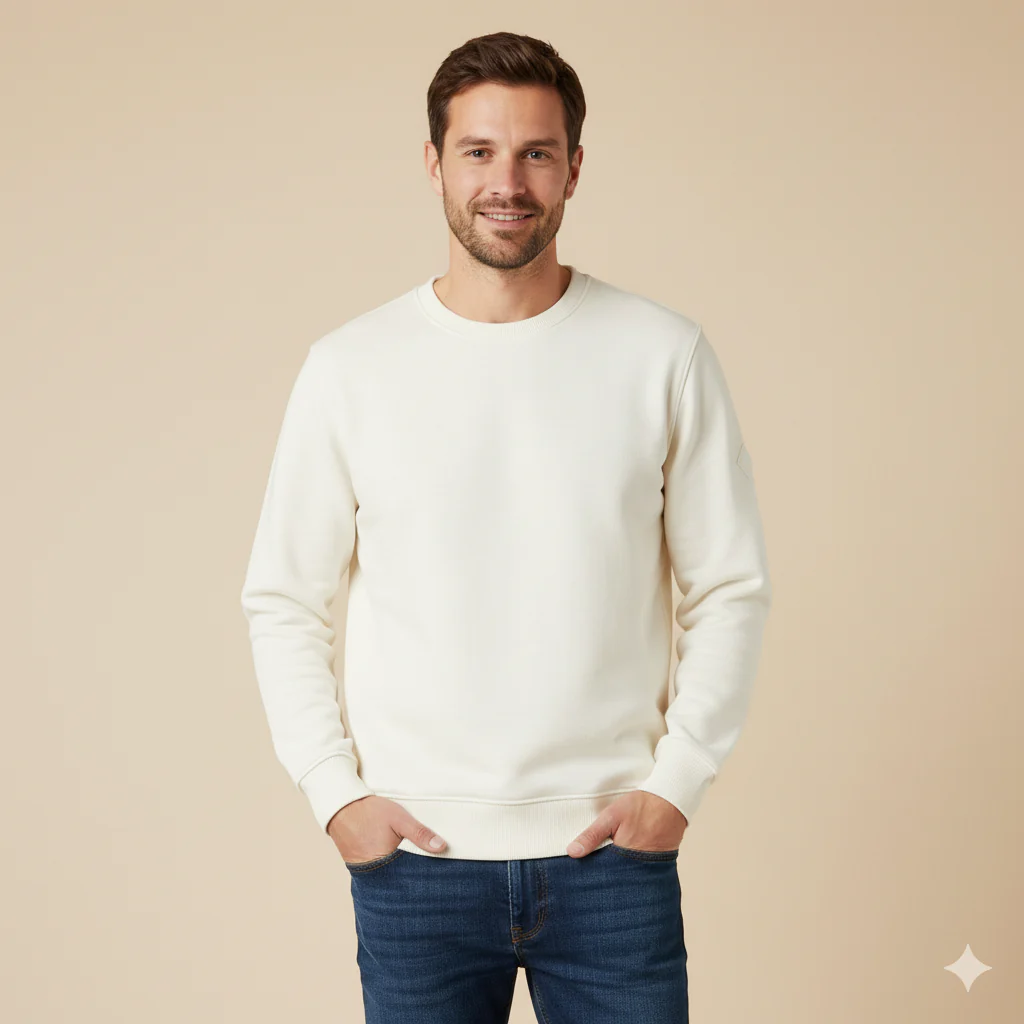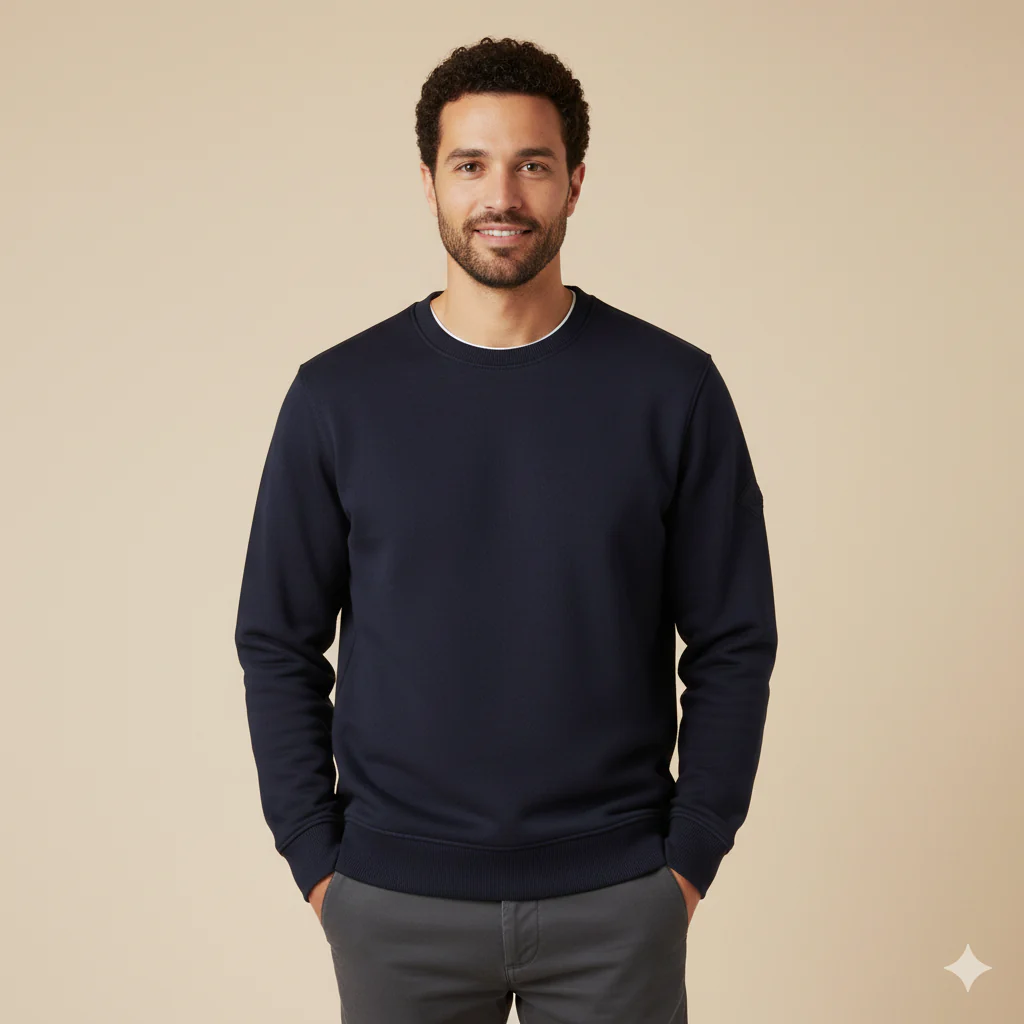 Felpa basic in cotone felpato. Girocollo con bordo liscio. Maniche lunghe, vestibilità comoda. Logo brand gommato applicato sulla manica. Taglia in foto M. Composizione tessuto 60% cotone 40% poliestere. Abbina il pantalone tuta dello stesso tessuto.