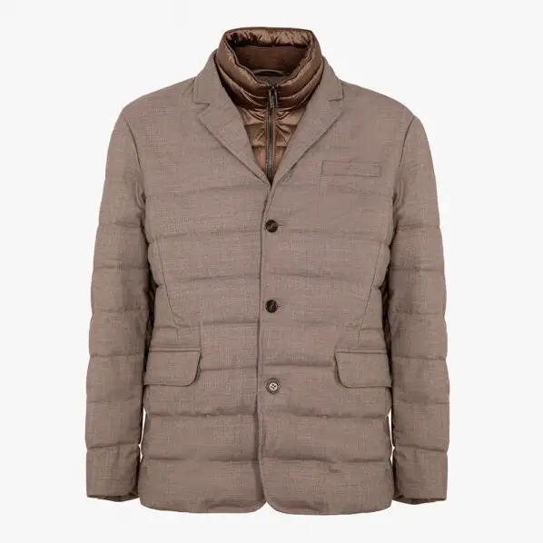 Giubbino modello field jacket in tessuto effetto lana. Collo giacca, taschino sul petto e tasche laterali con pattina applicata. Pettorina interna in tessuto tecnico lucido. Vestibilità regolare. Composizione tessuto 80% poliestere 20% rayon.