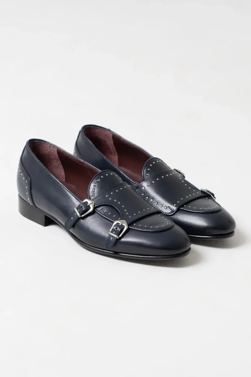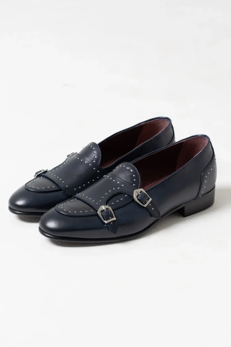 Mocassino Borchiato con Doppia Fibbia Blu