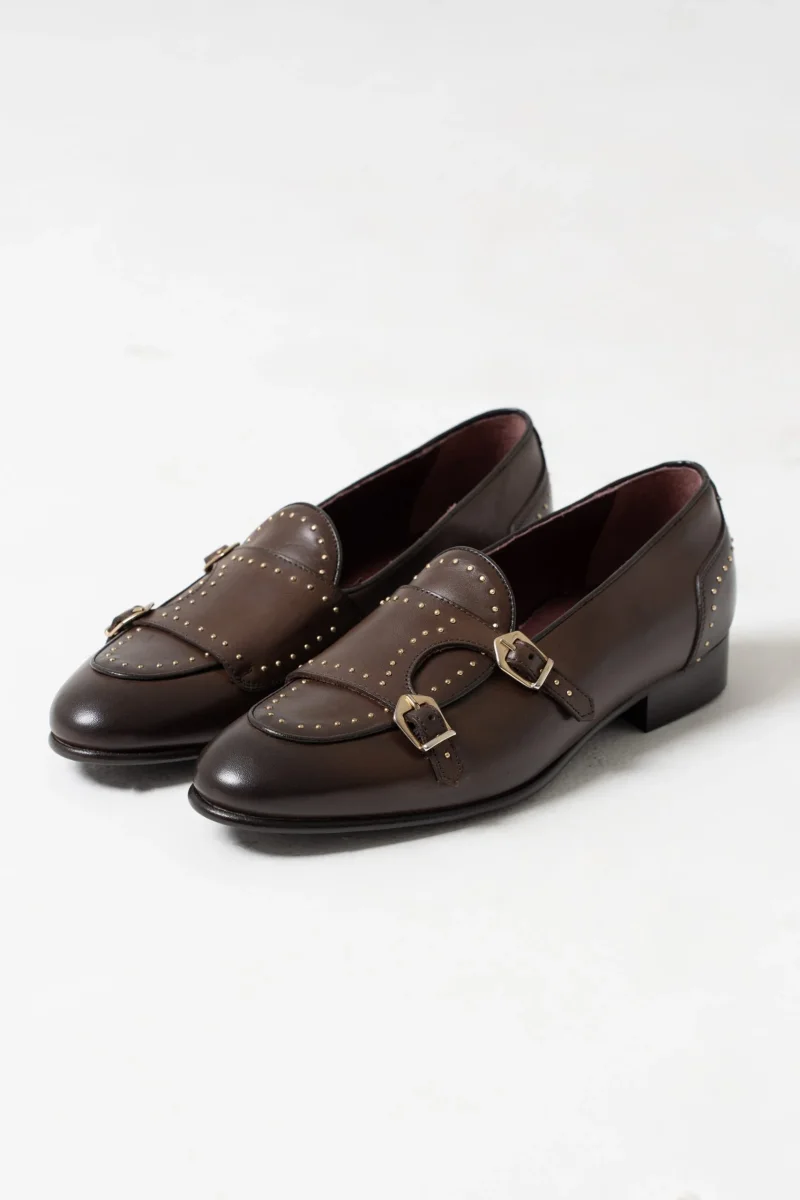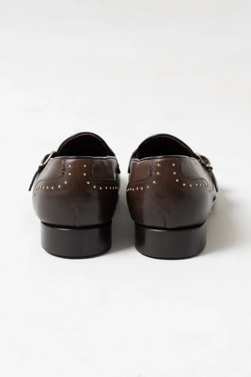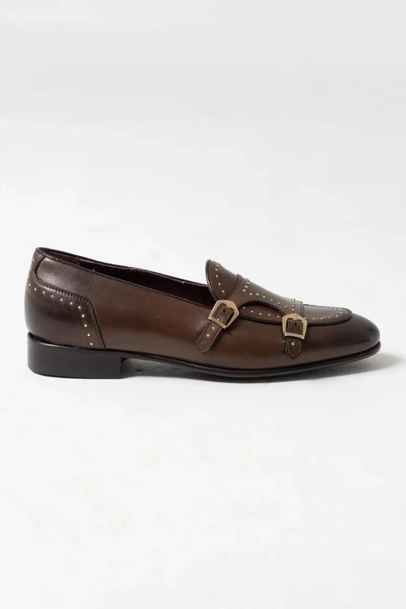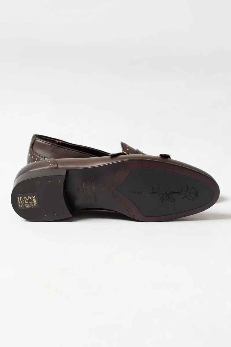 Mocassino Borchiato con Doppia Fibbia Marrone