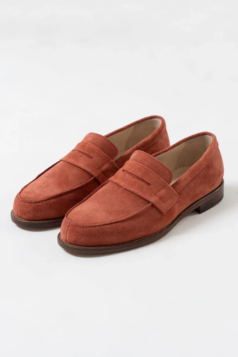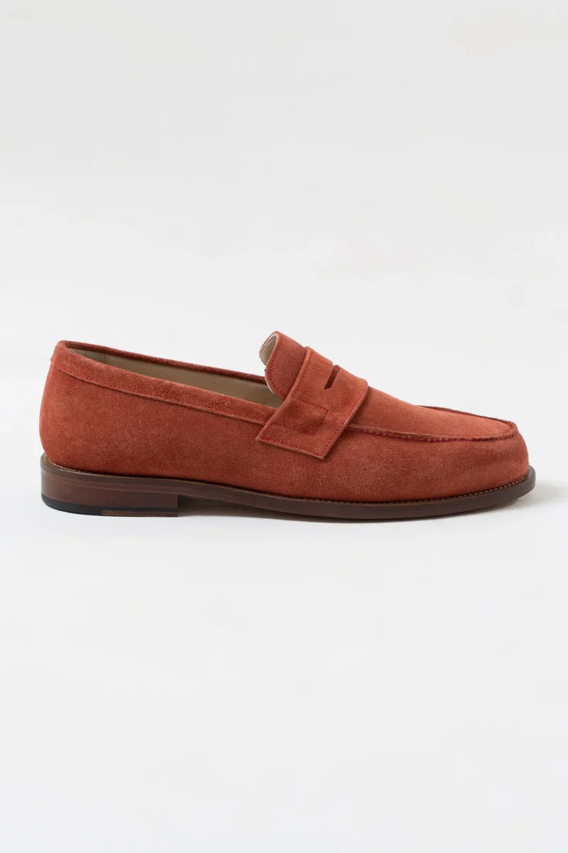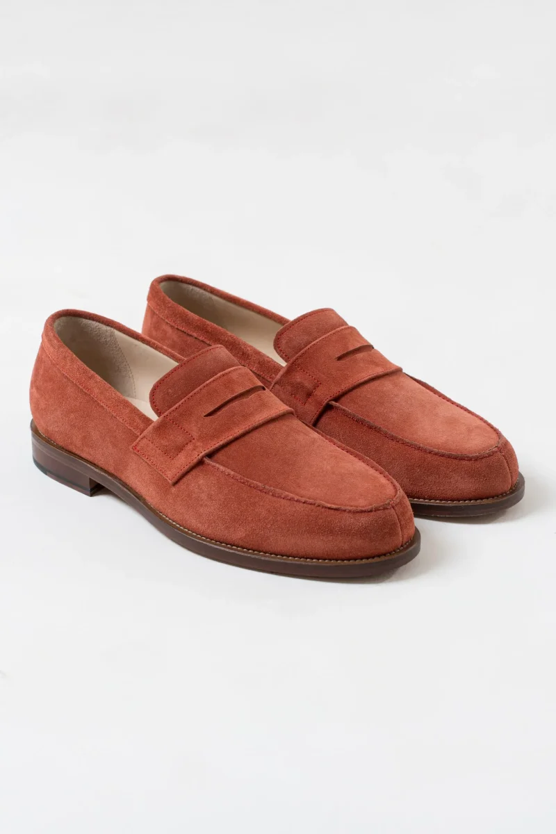 Mocassino con tomaia scamosciata , fodera in vitello, suola in cuoio con antiscivolo in gomma.