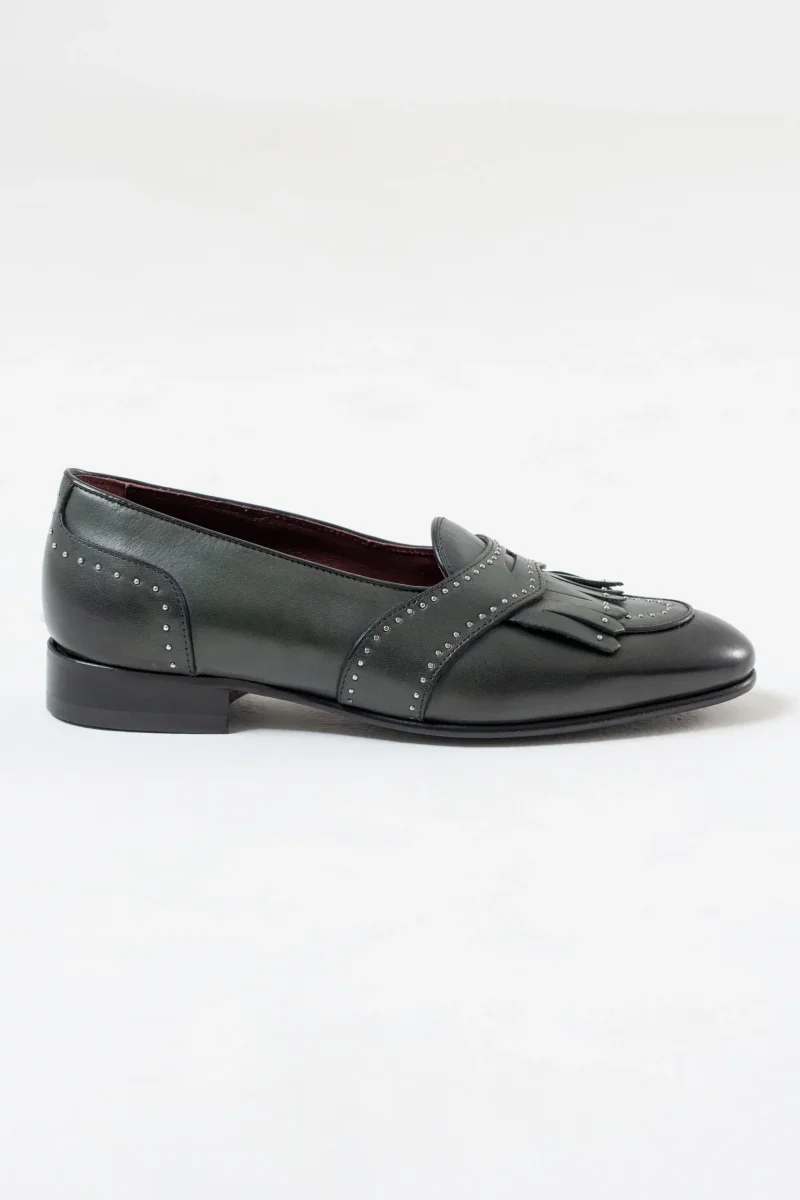 Mocassino con Bendina e Frangia Borchiate Verde
