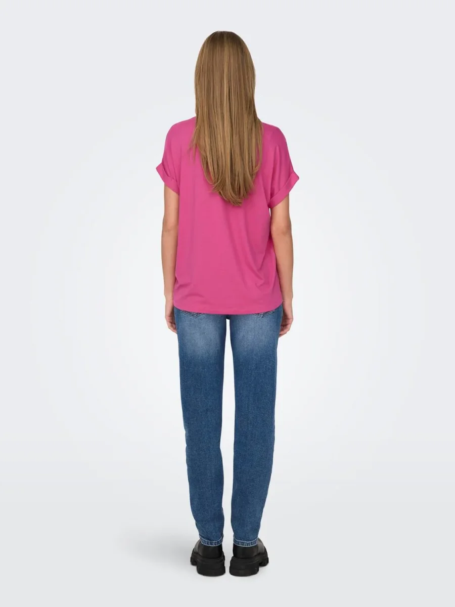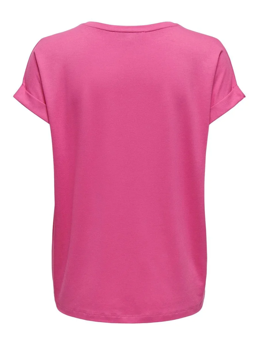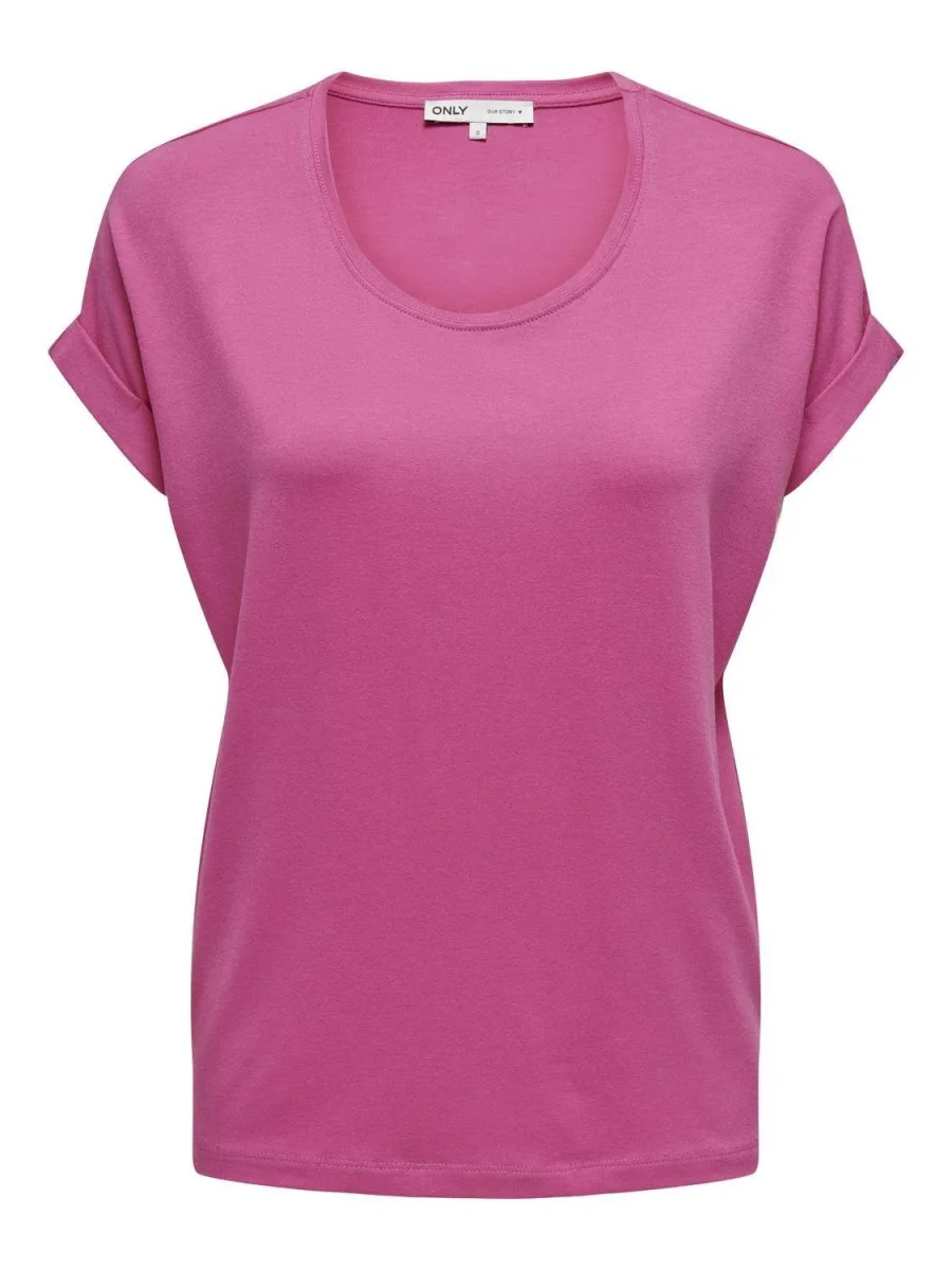 T-shirt basica in tessuto elasticizzato misto viscosa. Girocollo ampio con bordino liscio. Maniche corte rigirate, corpo morbido. Vestibilità comoda. Taglia in foto S. Composizione tessuto 75% viscosa 20% poliestere 5% elastan.