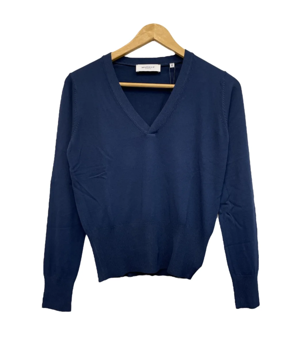 Maglia basica in tessuto cotone leggero. Scollo a V con bordo rifinito a canaletti. Maniche lunghe con polsini elasticizzati. Vestibilità slim crop con fondo elasticizzato rifinito a canaletti.