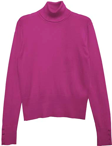 Maglia basica in tessuto misto viscosa elasticizzato. Collo alto modello dolcevita, maniche lunghe con bottoni rivestiti in tessuto tinta unita. Fondo con fascia alta. Vestibilit� aderente. Composizione tessuto 80% viscosa 20% nylon.
