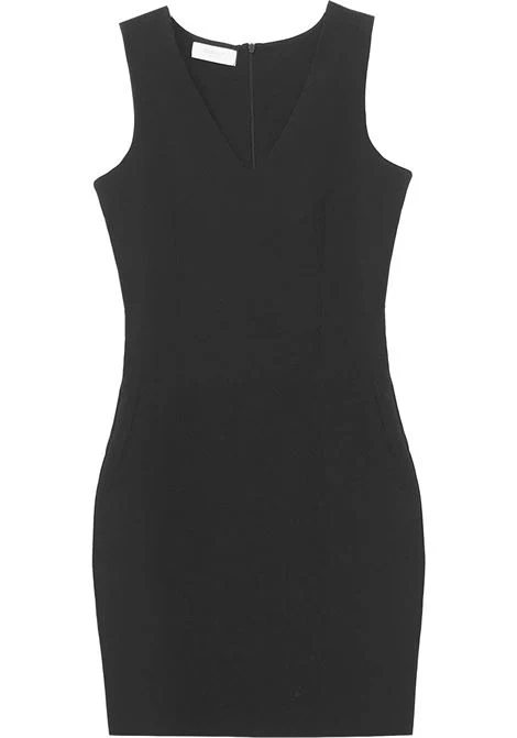 Vestito corto modello tubino in tessuto tecnico elasticizzato. Scollo a punta, maniche a giro. Chiusura con zip invisibile sulla schiena. Vestibilit� aderente. Composizione tessuto 90% poliestere 10% elastan.