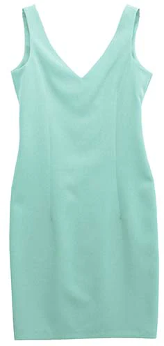 Vestito basico in tessuto elasticizzato. Bretelle larghe, scollo a V sia sul davanti che dietro, più profondo sulla schiena. Vestibilità sagomata. Lunghezza al ginocchio.