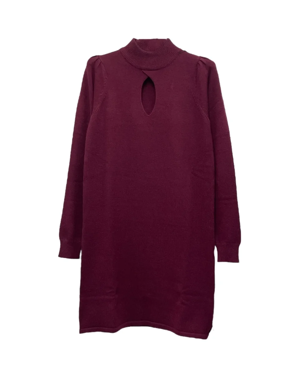 Vestito in maglina elasticizzata misto viscosa. Collo lupetto con goccia centrale. Maniche lunghe con polsini elasticizzati. Vestibilità aderente.