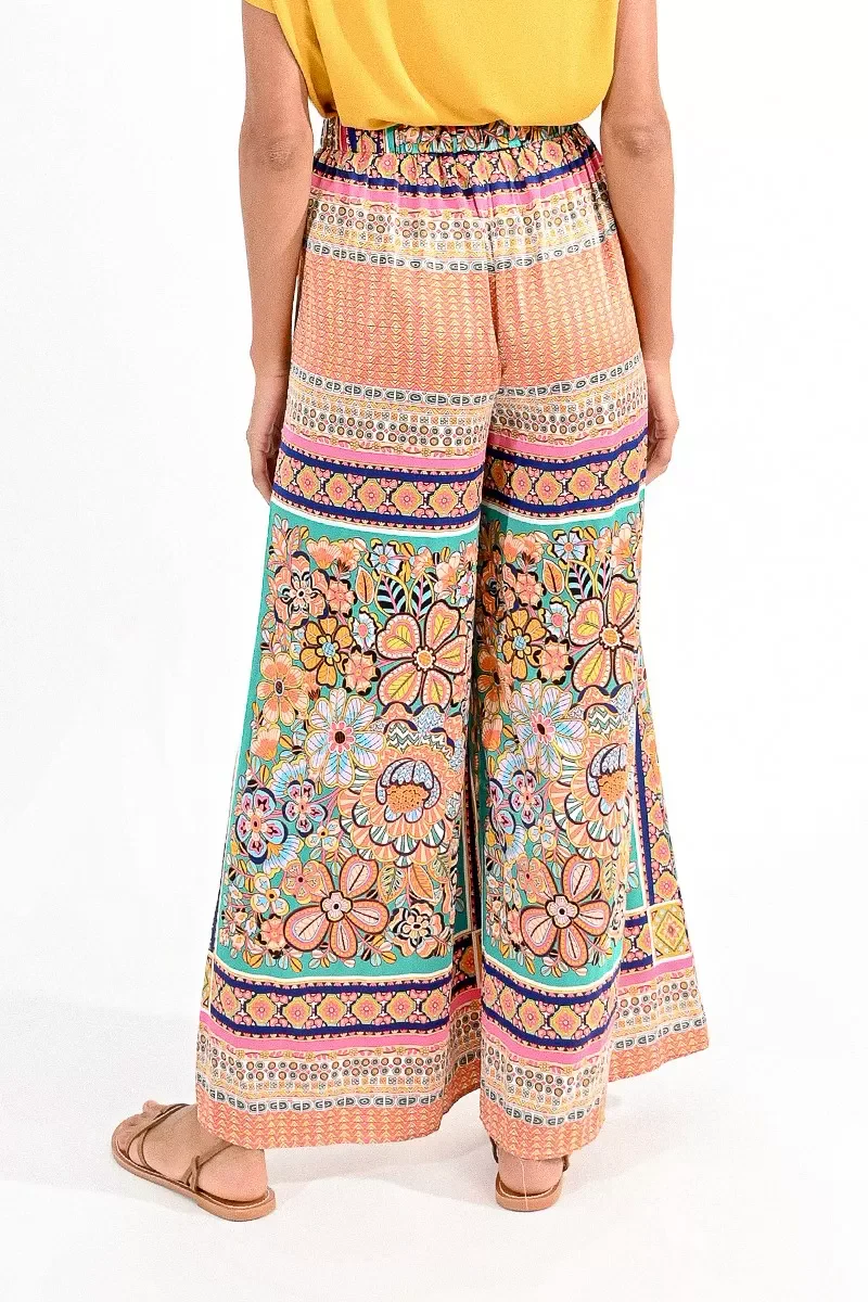Pantalone palazzo in tessuto tecnico leggero fluido. Vita alta, cinturino fisso sul davanti e con elastico sulla schiena. Gamba e fondo molto ampi. Taglia in foto S. Composizione tessuto 100% poliestere..