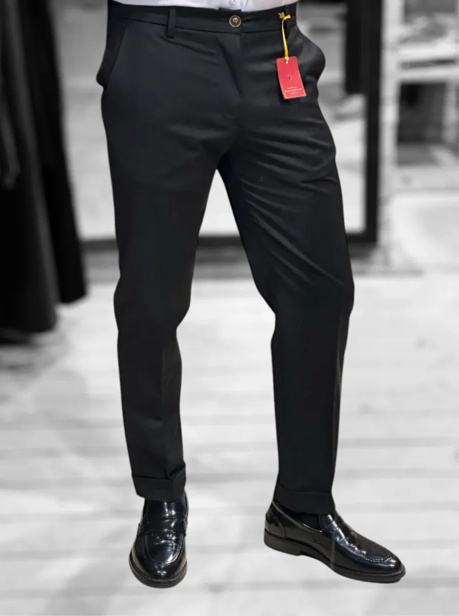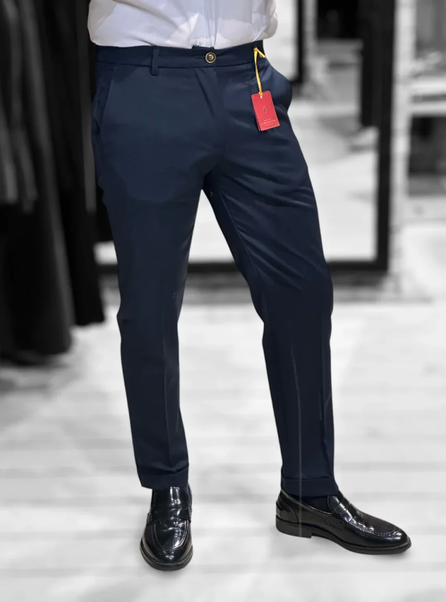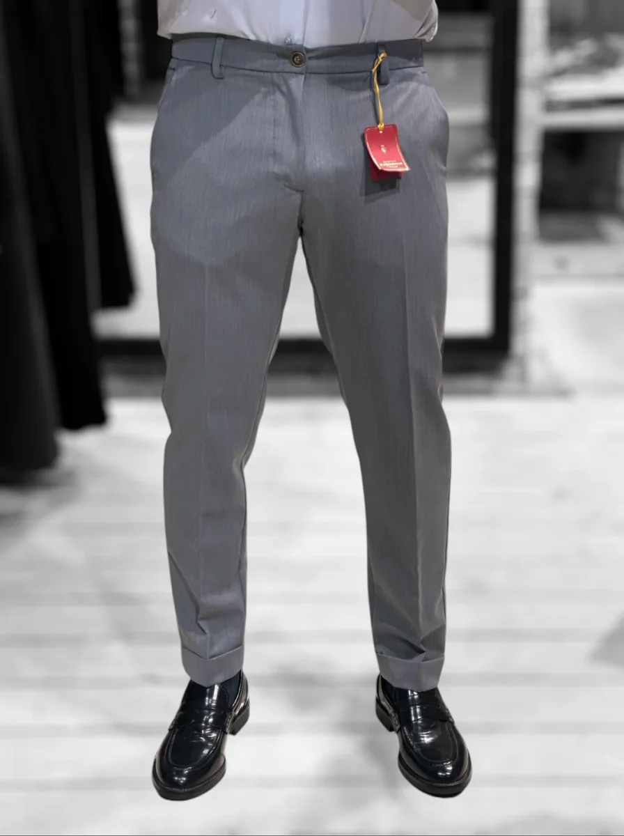 Il nostro modello di pantaloni più venduto. Vita regolare, cinturino fisso con passanti, chiusura con zip e bottone. Tasche a filo laterali, tasche a filetto posteriori. Gamba slim asciutta e fondo stretto con piega con risvolto, lunghezza capri. Un pantalone adatto ad ogni occasione e ad ogni outfit. Taglia in foto 46. Composizione tessuto 75% poliestere 20% rayon 5% elastan.