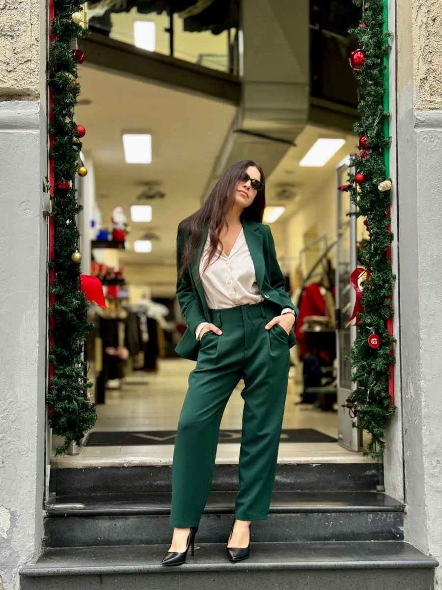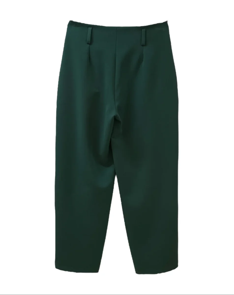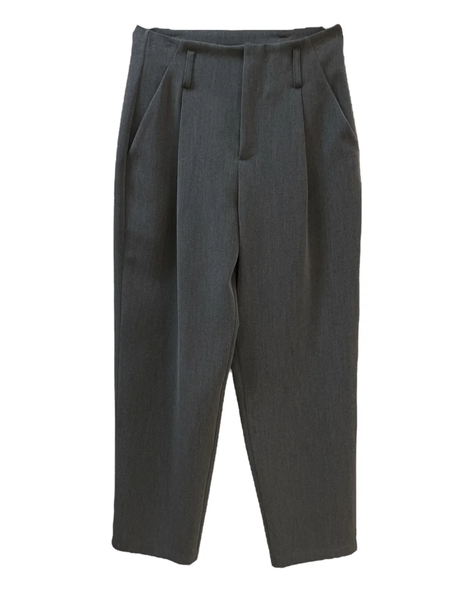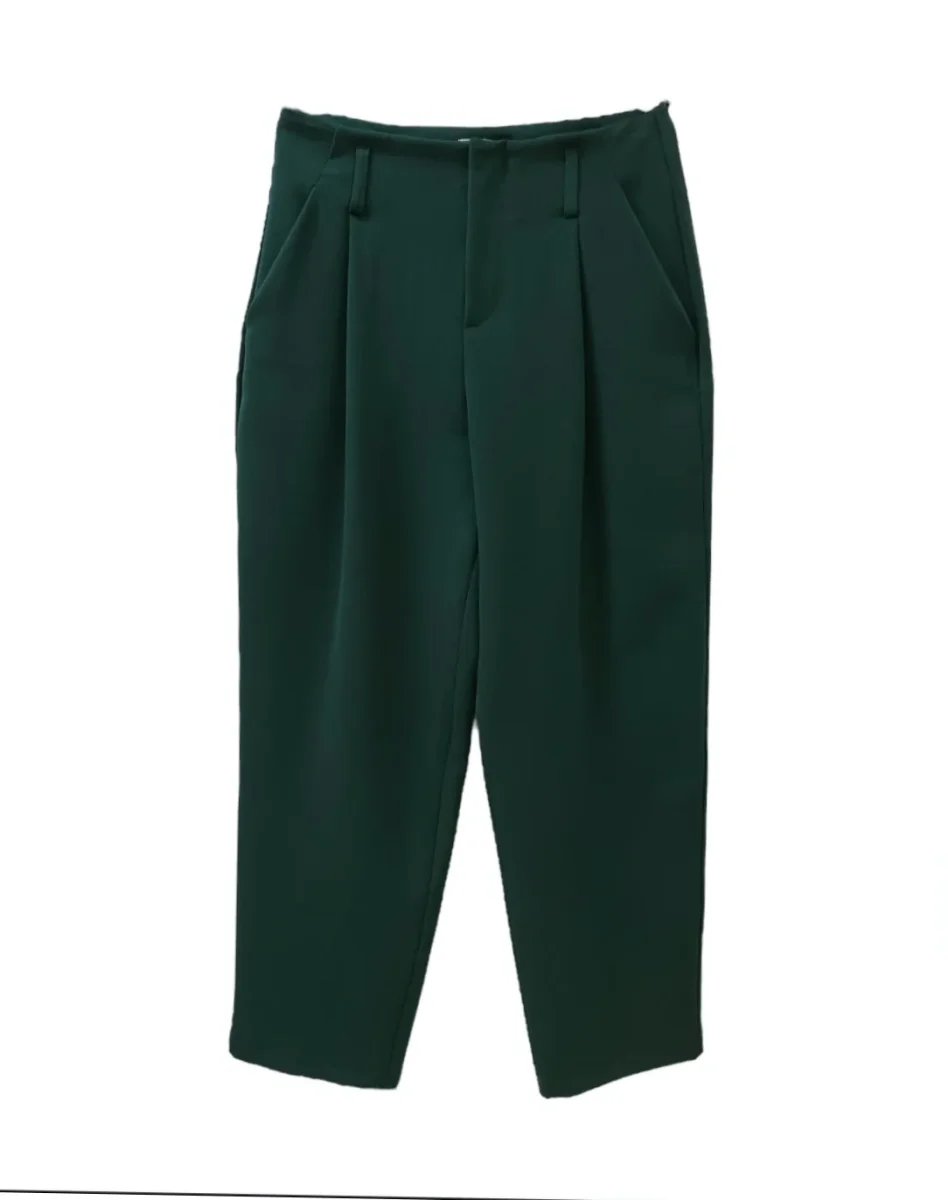 Pantalone basic in tessuto tecnico poliviscosa. Vita alta con pences e passanti, chiusura con zip, bottone interno e gancio invisibile. Tasche a filo. Gamba ampia e fondo dritto, vestibilità baggy. Crea il tailleur con la giacca abbinata. Tessuto 73% poliestere 22% viscosa 5% elastan.