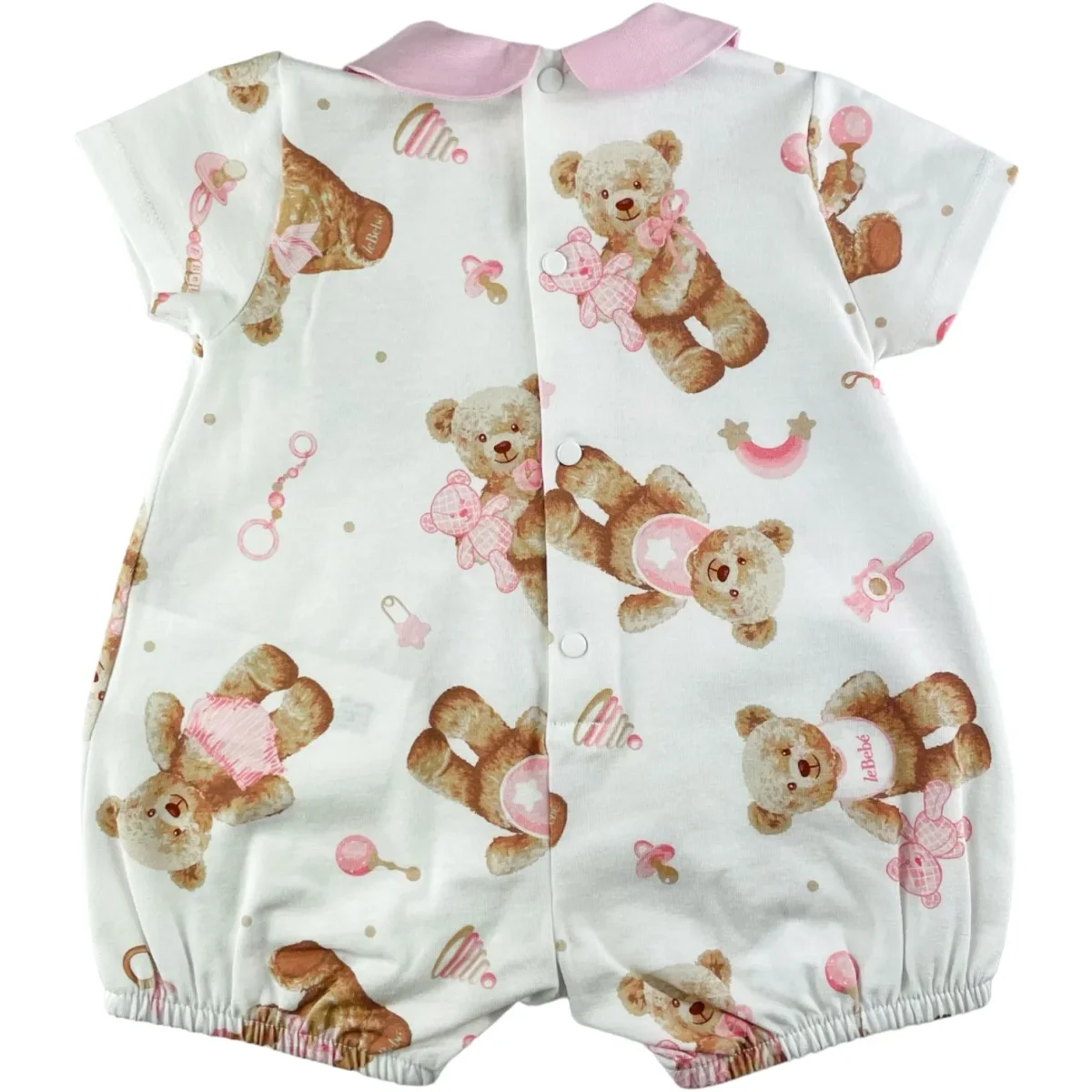 Pagliaccetto LE BEBE’ in cotone a fantasia, chiusura con clips.