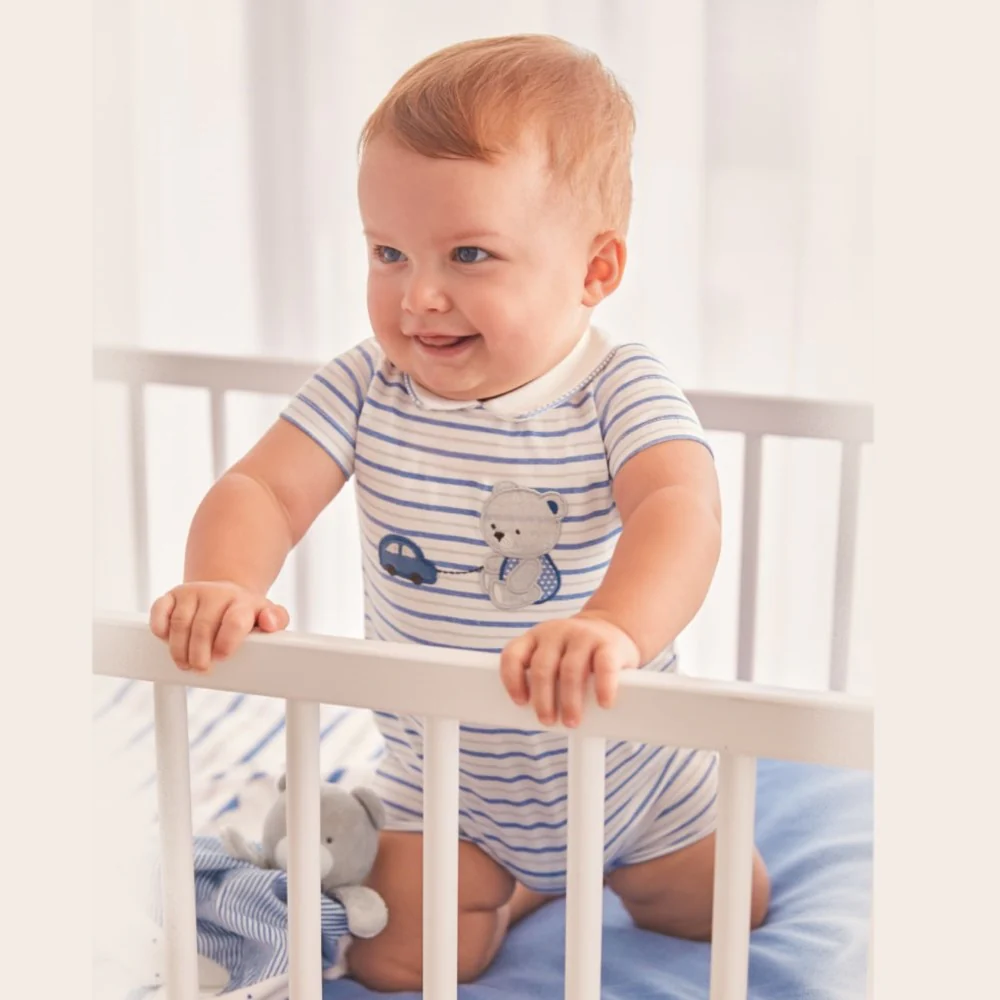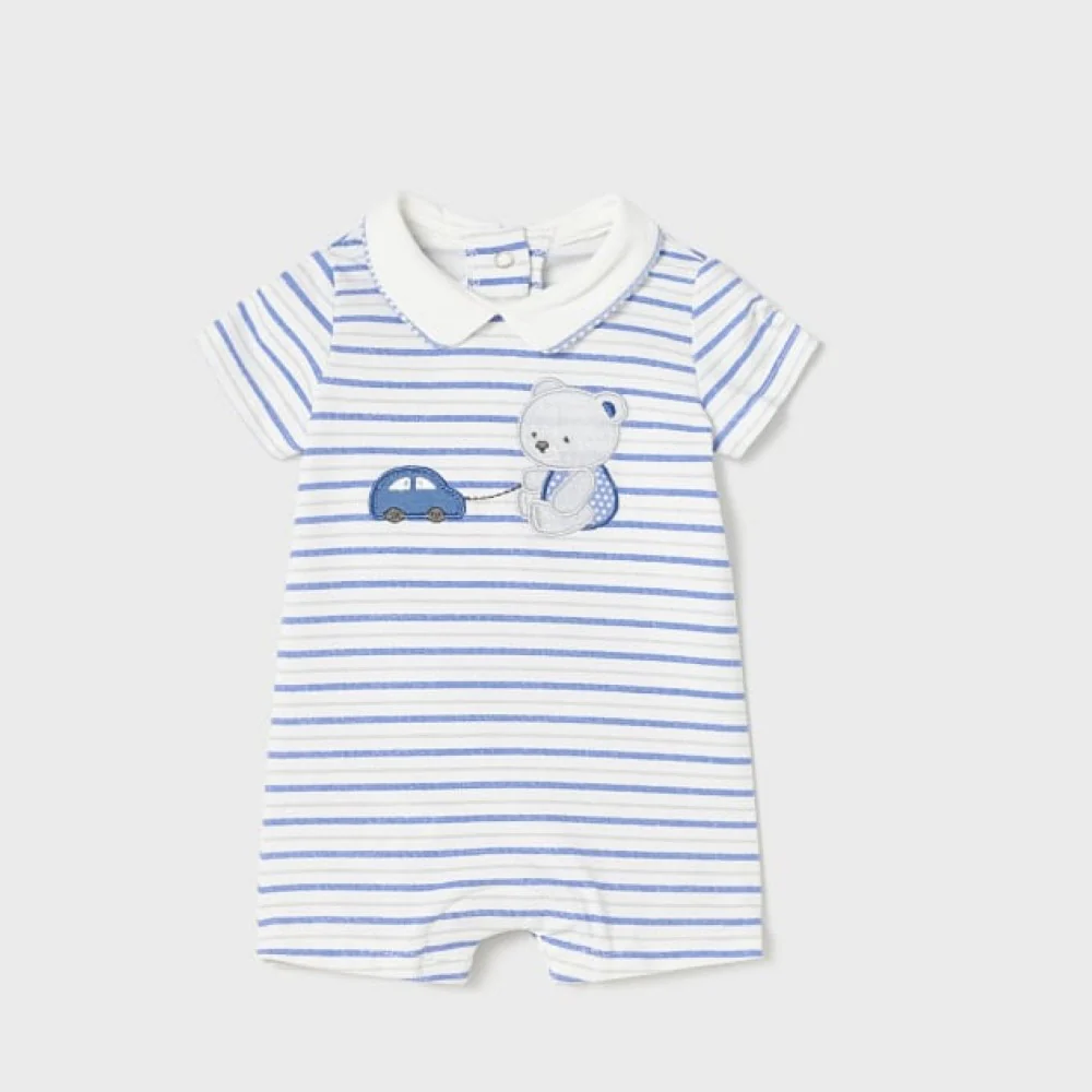 Pagliaccetto MAYORAL in cotone a fantasia con ricamo. apertura con clips. dotato di scatola regalo.