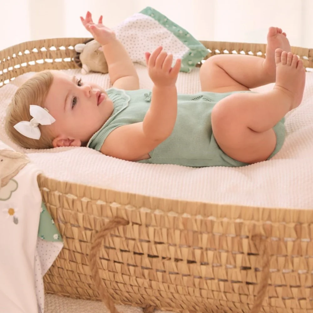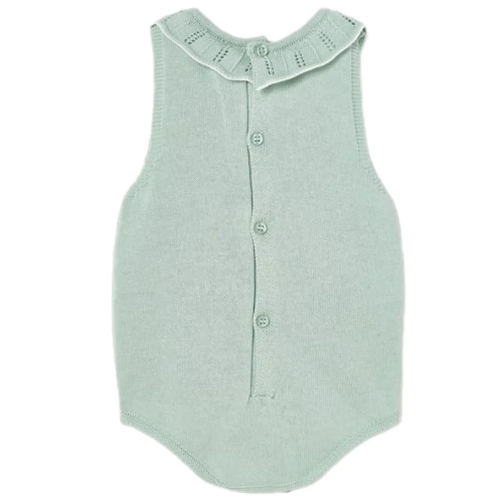 Pagliaccetto MAYORAL in filo di cotone girocollo con volant chiusura con bottoncini sul retro.