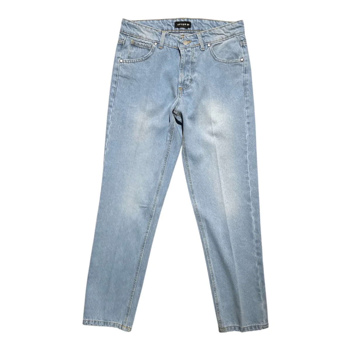 Jeans uomo in tessuto denim di cotone. Vita regolare, chiusura con bottoni, 5 tasche. Vestibilità slim, lunghezza capri. Composizione tessuto 100% cotone.
