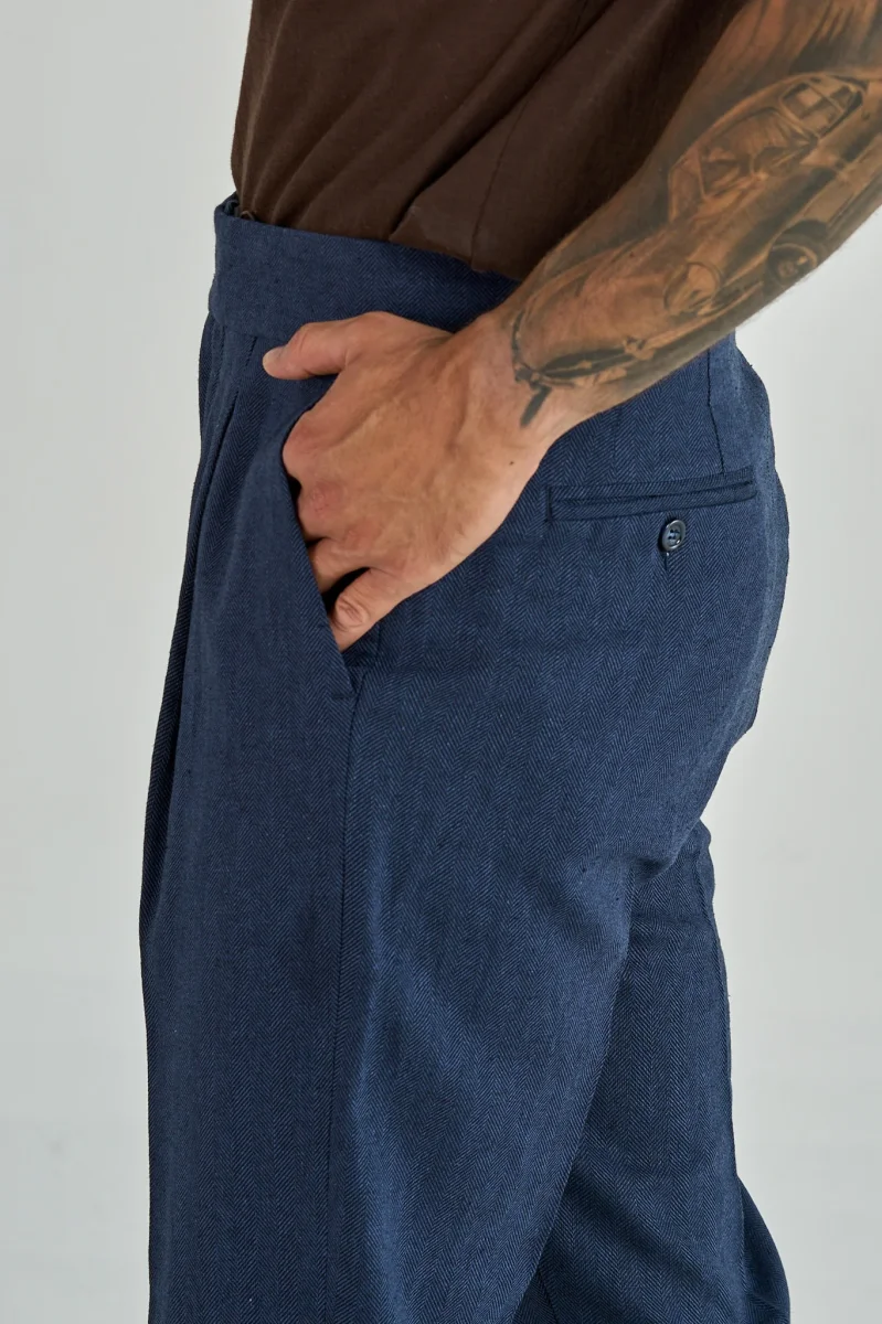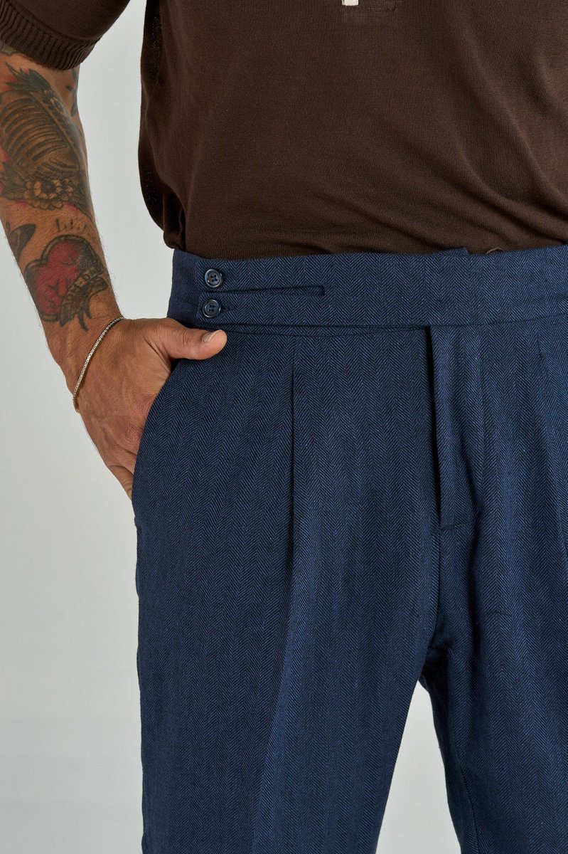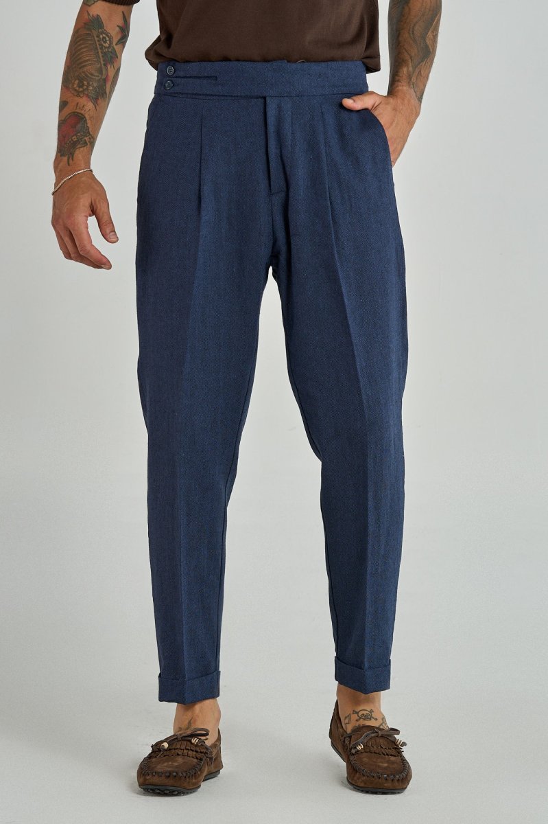 Pantalone Biforcato in Lino Blu