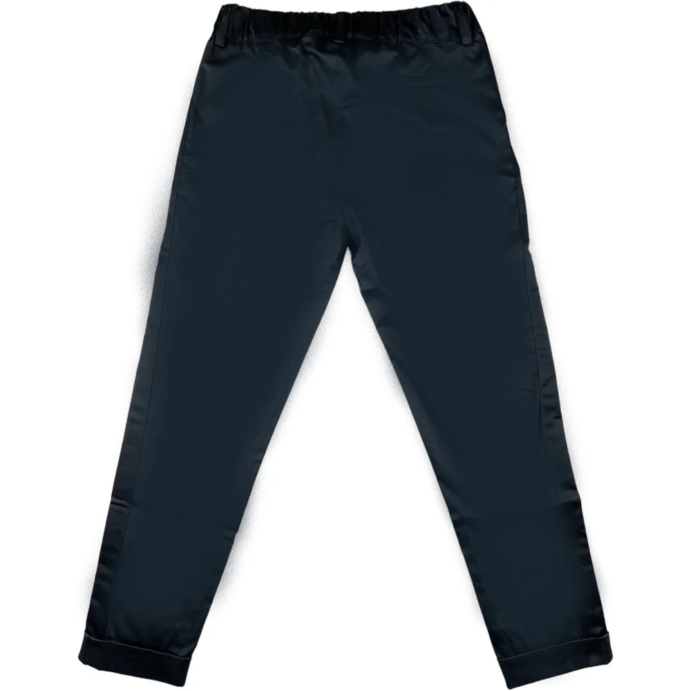 Pantalone CESARE PACIOTTI blu con rifiniture a contrasto in raso chiusura con bottone logato.