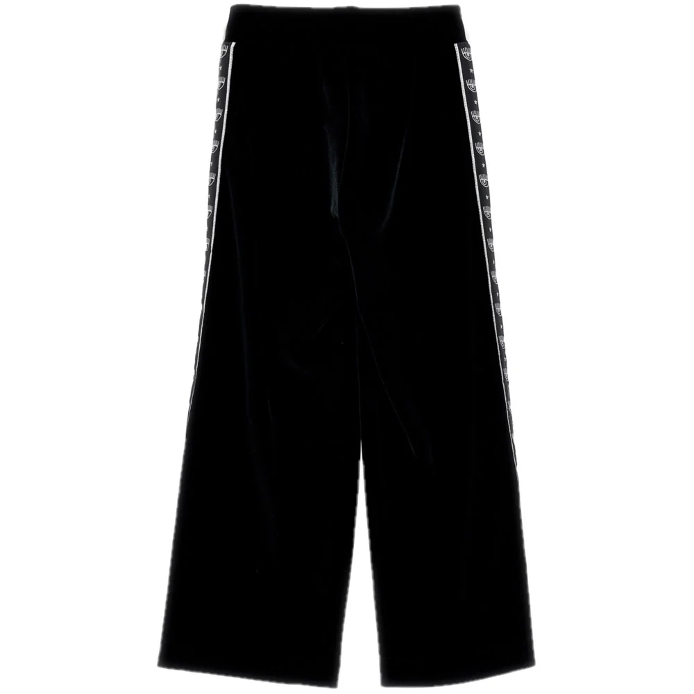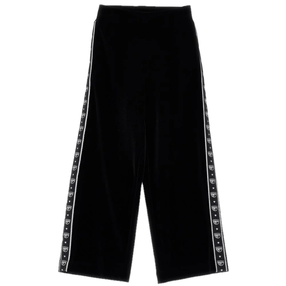 Pantalone CHIARA FERRAGNI in ciniglia bande logate laterali elastico in vita e tasche laterali.