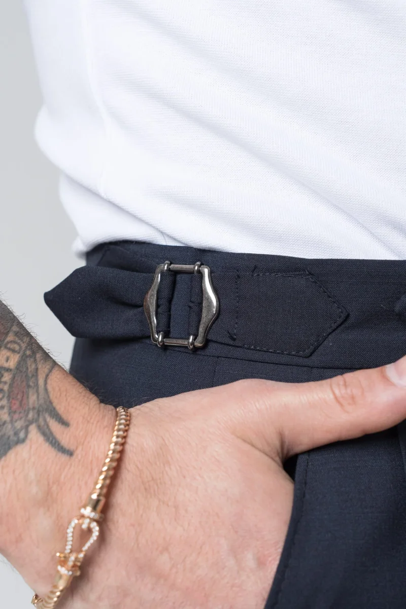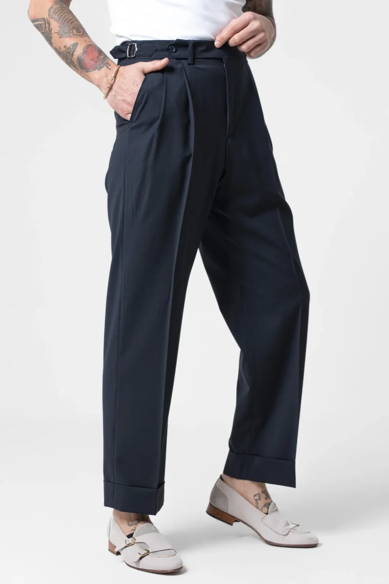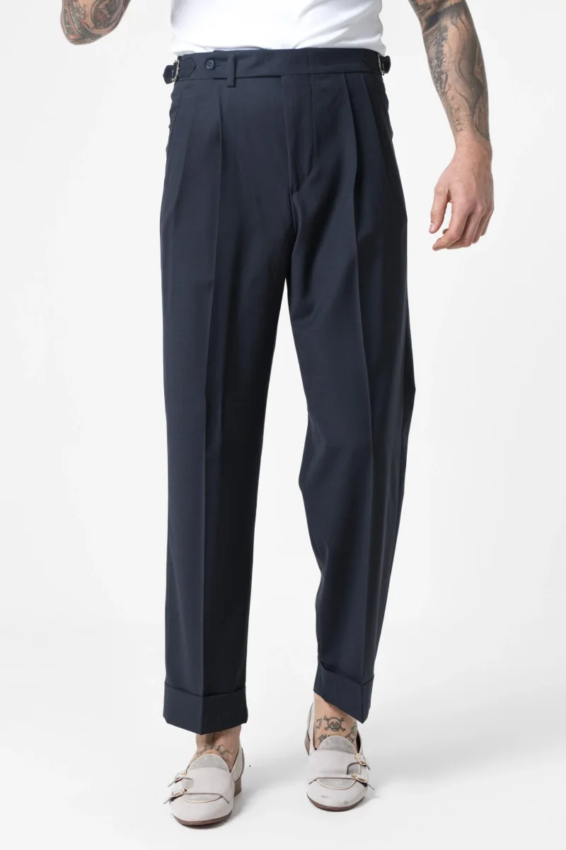 Pantalone Fondo Ampio e Fibbie Laterali Blu Napoli
